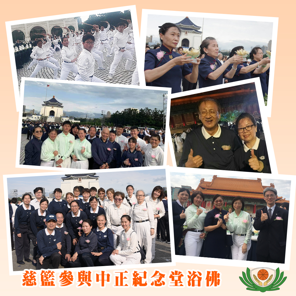 慶祝「佛誕節、母親節、全球慈濟日」三節合一,慈濟基金會在臺北市中正紀念堂舉辦「2019 年佛誕浴佛孝親感恩祈福會」,這場萬人浴佛大典的祈福法會,透過法師引領全場約兩萬多位民眾虔誠一念心,為家人、臺灣、全球祈福天下無災難。慈籃家族不僅參與浴佛,也把握因緣共同演繹鐘鼓齊鳴傳遞平安吉祥。