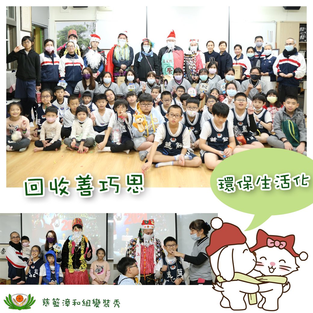 因應環保三十年,藉此活動,讓漳和慈籃的學員了解,回收物再利用的價值。活動前請親子共同製作,將回收物發揮巧思,製成藝術素材。再將這些飾品,讓學員裝扮教練聖誕老公公,過程中增進彼此間互動情誼。整個活動呈現歡樂有趣,且結合環保,是特別有意義的活動。
