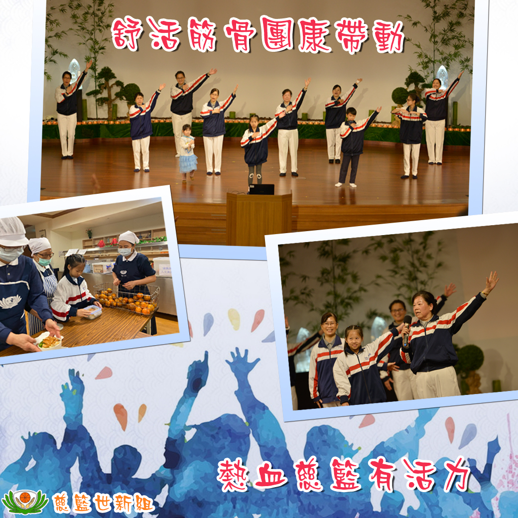 慈籃世新組參加第五聯區舉辦醫療志工初階課程中的團康帶動,學員及家長在秀美師姊帶領下,多次練習後完美呈現。與台下學員一起來做健康操,希望大家身體健康又耐操。