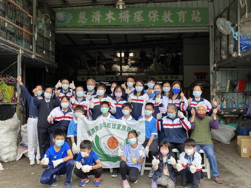 每個月第二個星期日是慈濟的大環保日,4月11日這一天,慈籃世新組的學員與家長、教練一行二十六人,來到木柵環保教育站,加入回收分類的行列。