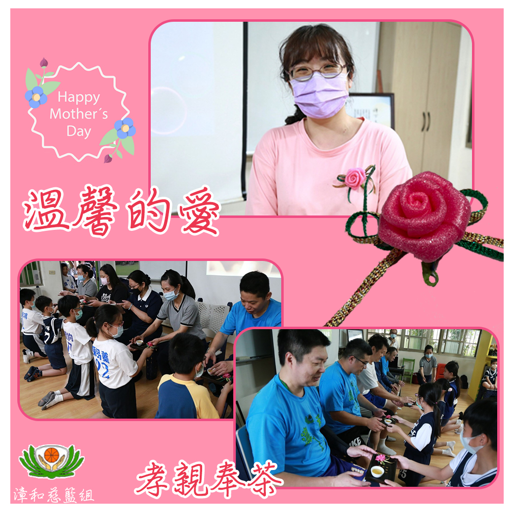 漳和慈籃慶祝母親節,藉奉茶儀式向父母與教練表達感恩之情,當學員半跪恭敬地奉上一杯茶時,父母及教練露出歡喜和感動的笑容,雙手端起慢慢品茶,並相互祝福。