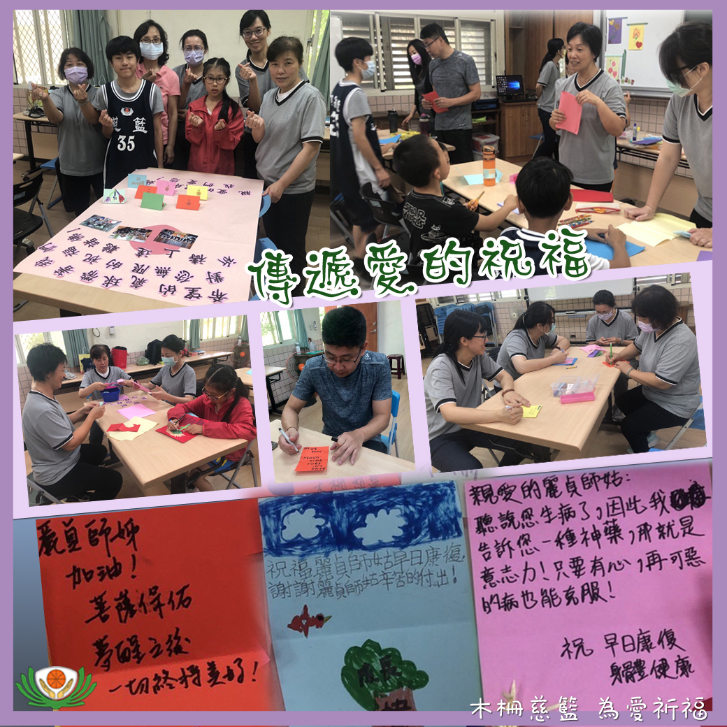 那天,我們接到慈籃總部來訊息,知悉基隆慈籃麗貞師姊菩薩身體不適,正與病魔奮戰中;慈籃家族要一起集氣,把祝福傳送給麗貞師姊菩薩。 木柵慈籃課務組團隊特別安排於5/2(日)的人文課程時間,由講師王育慧師姊講述母親節的由來、孝親內容、傳送愛的祝福給麗貞師姊菩薩後,讓學員與家長一起做母親節卡片和祝福麗貞師姊菩薩身體安康的祝福卡。接著,當學員們回到籃球場時,家長們留下來,一起將學員呂宥霖設計的「集氣祝福大海報」剪貼和組合,共同完成對麗貞師姊菩薩滿滿愛的關懷和祝福 !