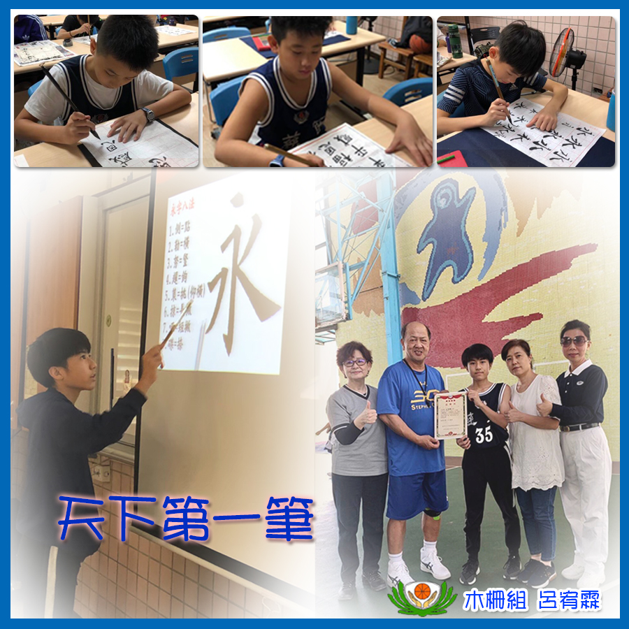 慈籃好漢「動靜皆宜」。不但打球講究團結和策略,更要兼顧內修人文與氣質。「感恩慈籃師姑、師伯,這樣放心的開放人文課程,讓我們承擔」學員呂宥霖感恩的分享。此次,宥霖擔任人文課程講師,分享自己學習書法的方法和心得。「先要洗筆、沾墨……手要成三角平放、擺正……背直和大腿成90度……」看著準備好的PPT,一邊示範一邊說明,宥霖很有自信呢!學員們也躍躍欲試,想動手練習書法,甚至還有人寫出自己喜愛的靜思語和家長分享哦!