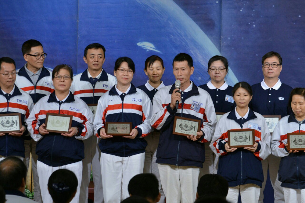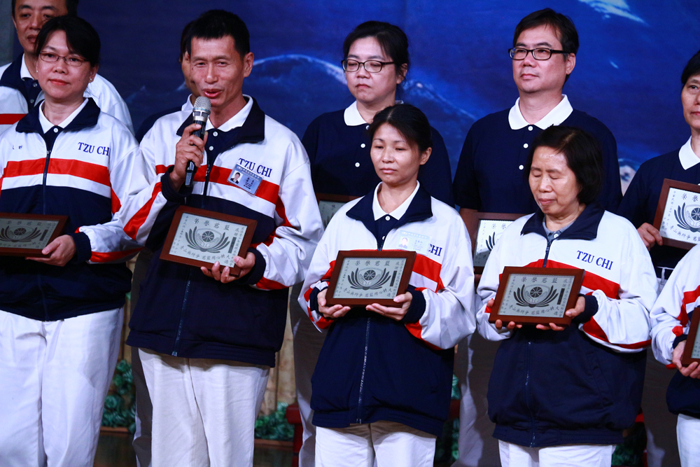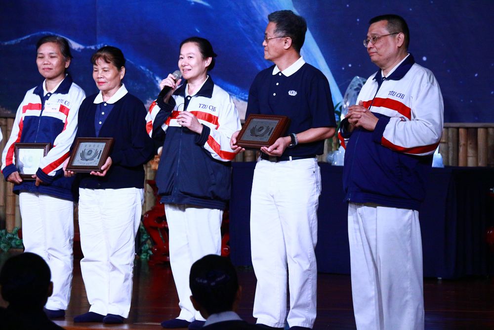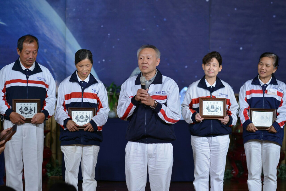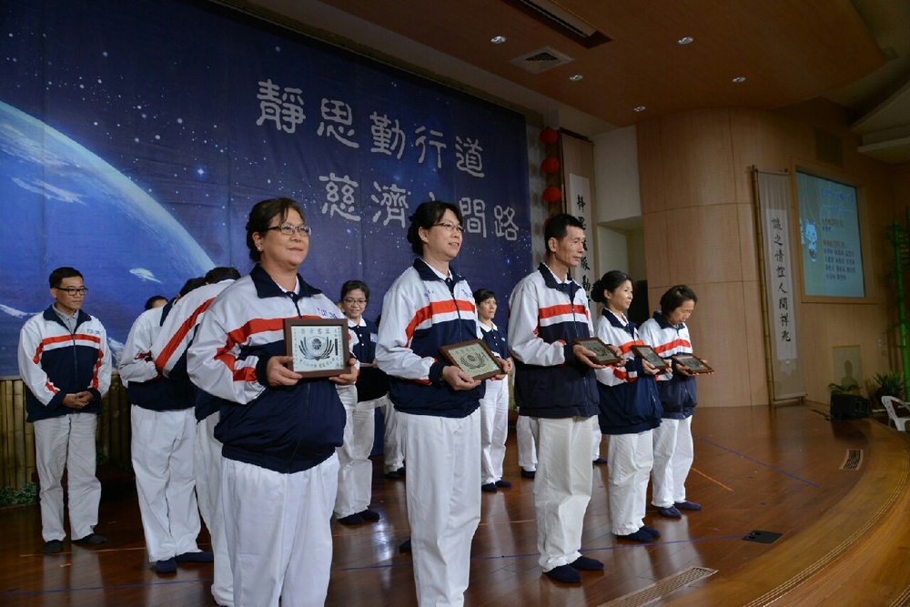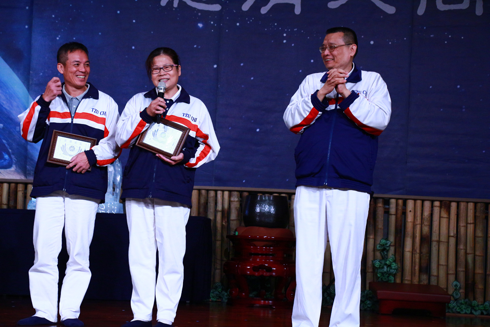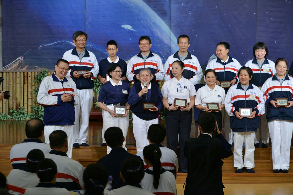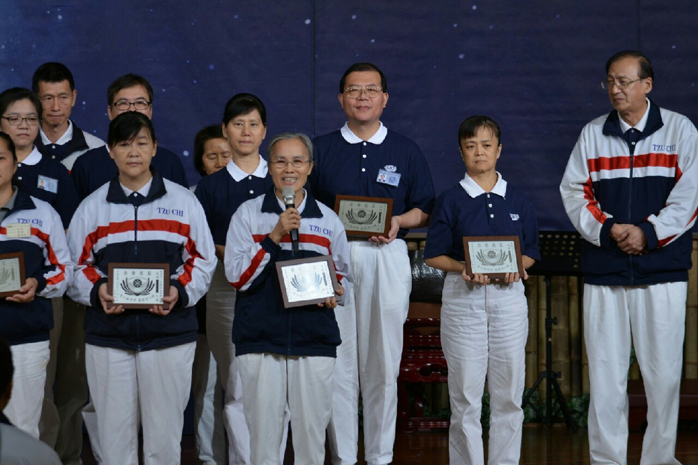 最後壓軸的,應該就是大家最期待的志工頒獎,5年/10年/15年對這些志工菩薩們具有非常重要的意義,雖是小小的一個獎牌,但卻代表了對數百個日子付出的鼓勵與肯定。同時邀請老幹新枝各組新舊任連絡人一起上台分享。大家雖然來自不同的地方,卻因慈籃家族的因緣,齊聚一堂相互學習相互觀摩,每年的今日,都讓慈籃家人在回家團圓法喜中圓滿了週年慶活動。
