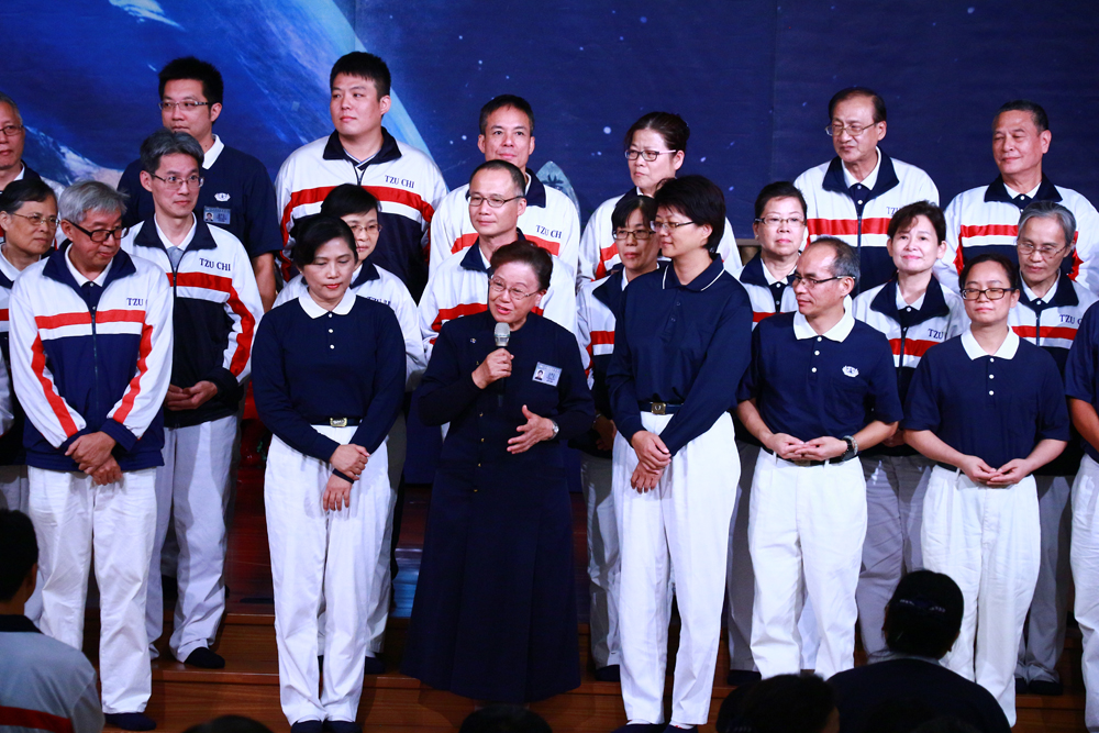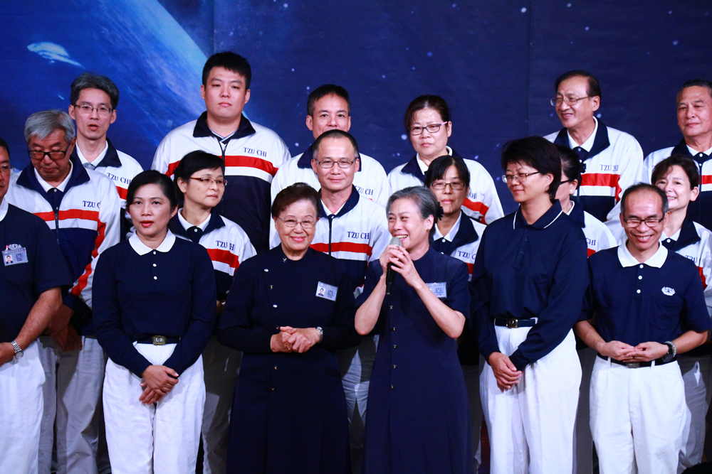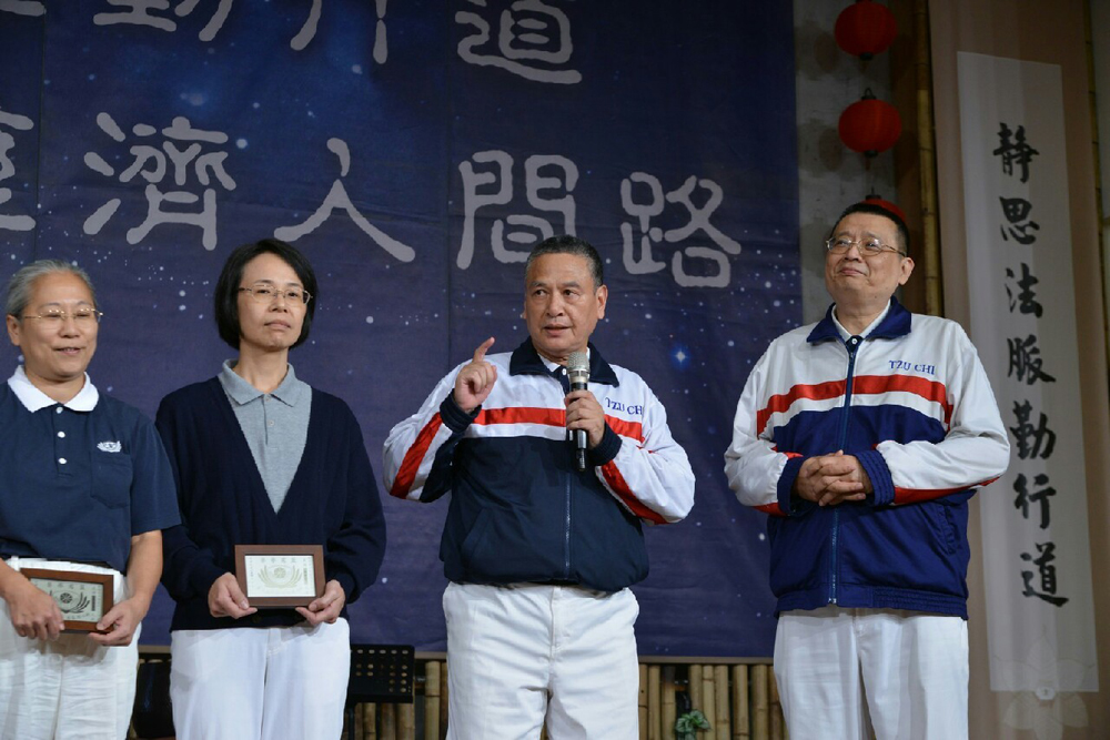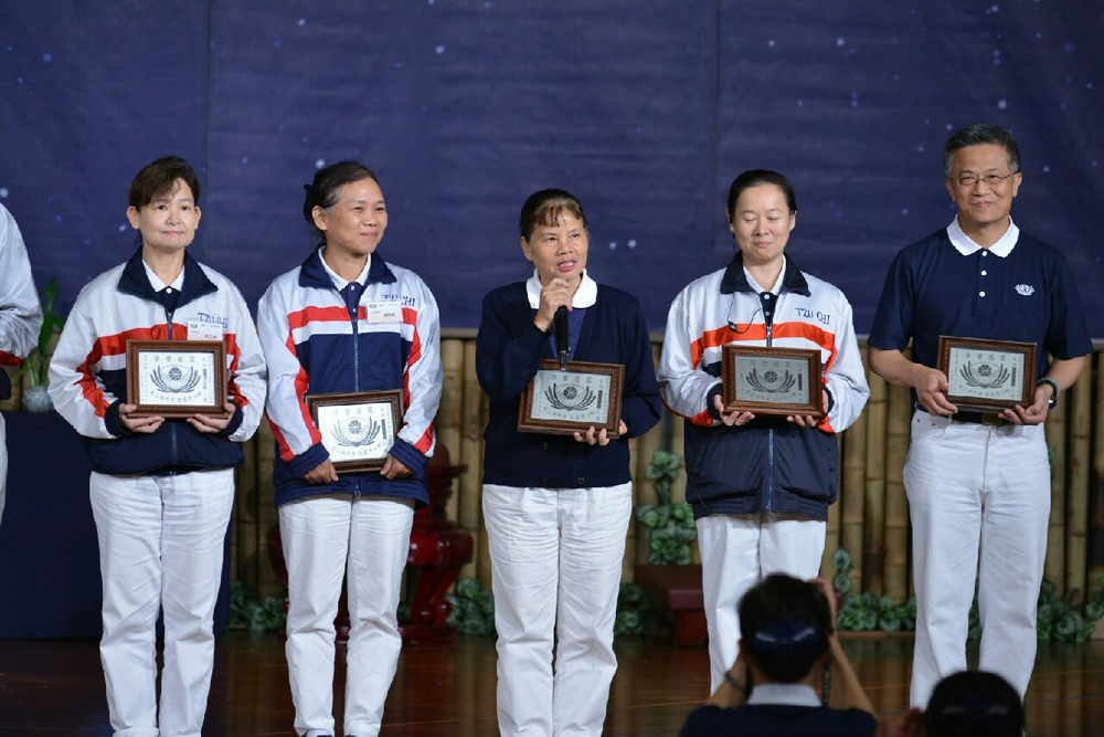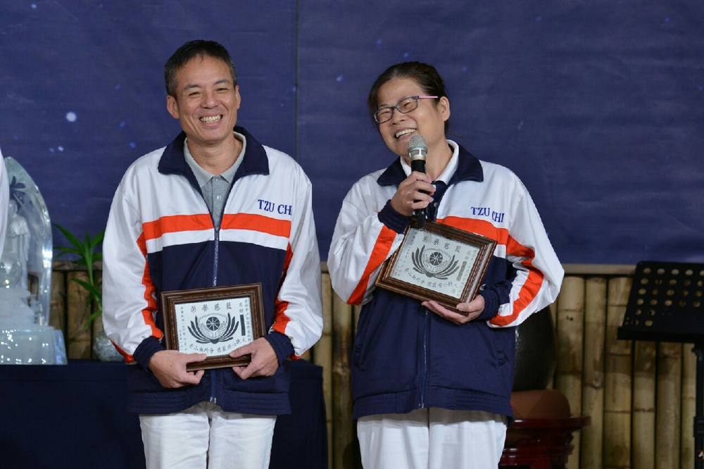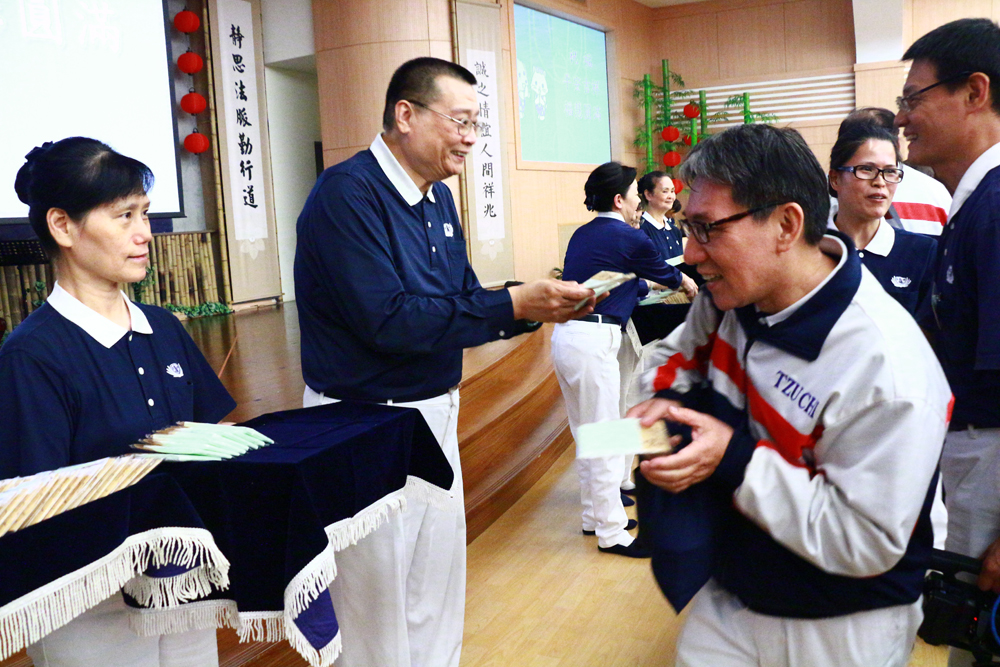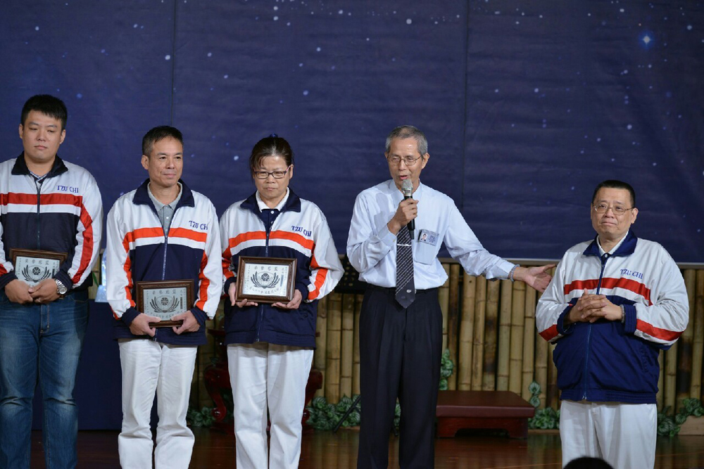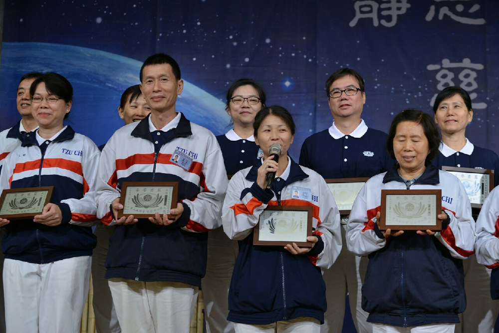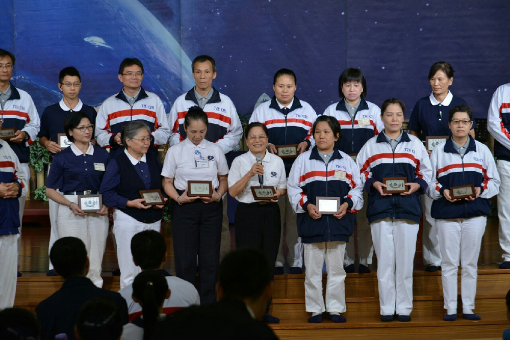 最後壓軸的,應該就是大家最期待的志工頒獎,5年/10年/15年對這些志工菩薩們具有非常重要的意義,雖是小小的一個獎牌,但卻代表了對數百個日子付出的鼓勵與肯定。同時邀請老幹新枝各組新舊任連絡人一起上台分享。大家雖然來自不同的地方,卻因慈籃家族的因緣,齊聚一堂相互學習相互觀摩,每年的今日,都讓慈籃家人在回家團圓法喜中圓滿了週年慶活動。