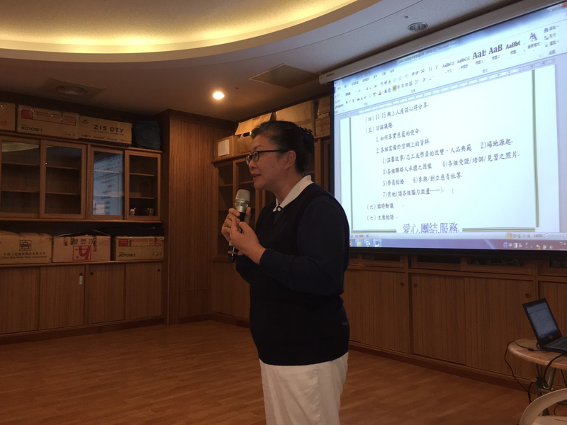 世新組分享早期因為沒有人知道慈籃,於是開始世新組努力走入社區,同時投入社區活動,因為勇於承擔,各個功能幾乎都有慈籃志工家長參與。慈籃是一個福田,我們願意用心耕耘,大家互相成就,有願就有力,龍天護法會成就你,藉由帶家長志工到環保站做環保或做香積,也因此帶動很多家長志工,更具有向心力。