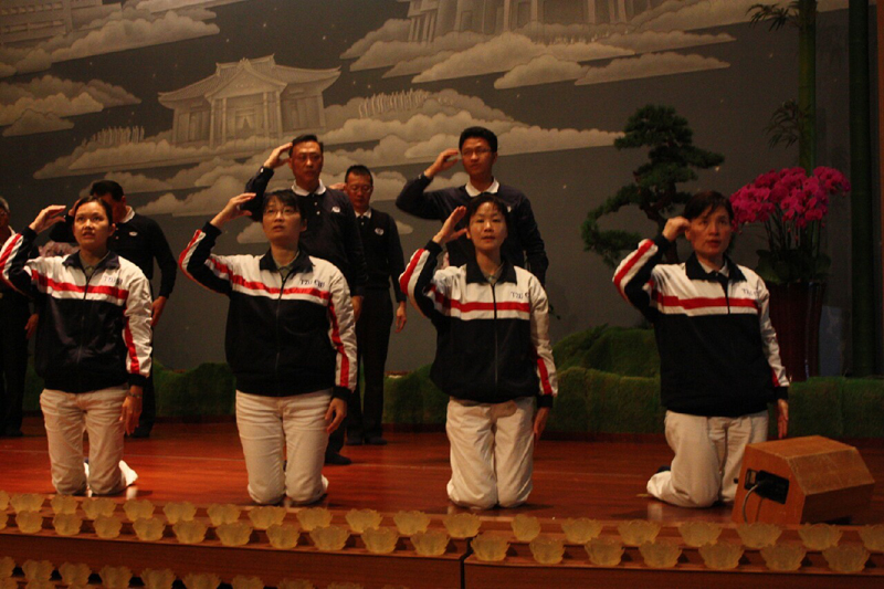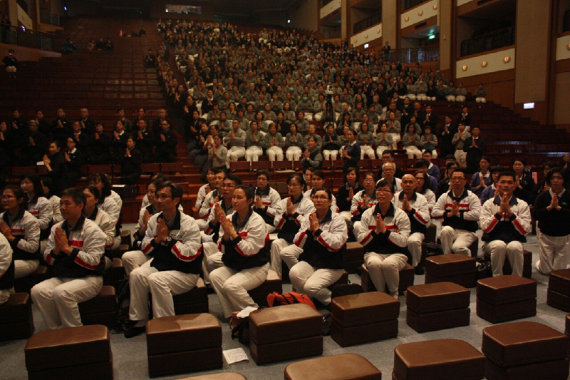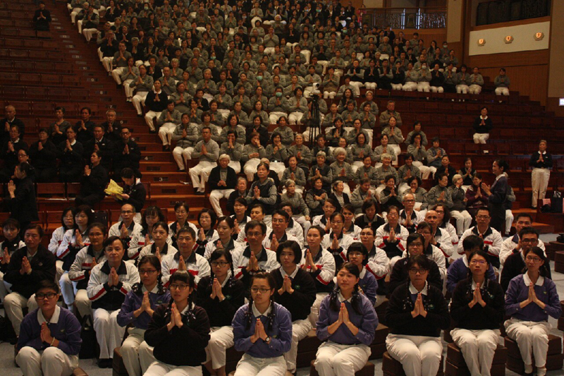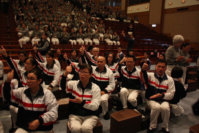 最後,證嚴上人前往各功能團體,向每位志工致意,看到慈籃家族,整齊的制服,讚歎:「這是慈籃!」大家聽了非常感動!身為慈籃的榮譽,「因為我們是慈籃,我們是愛心、團結、服務,因為團結的力量最美麗。」