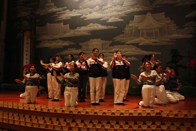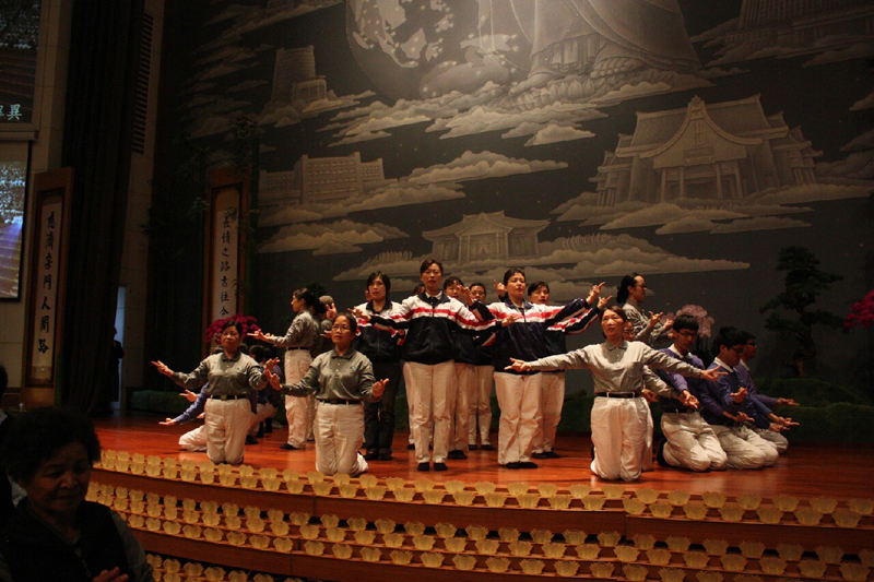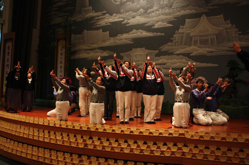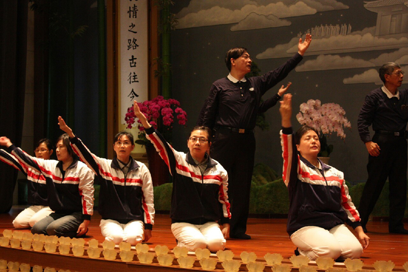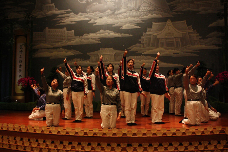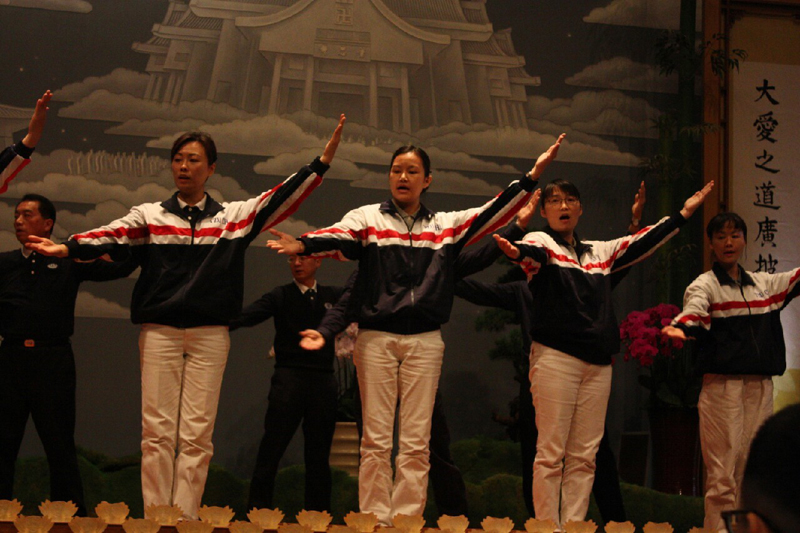 圖說 : 慈籃家族共邀約57位菩薩家人一同入經藏外還有一百位慈籃家族參加此盛會,演繹無量義經-說法品,每位菩薩大聲唱誦,口中唱誦、用心體會,將法唱入心坎裡,以虔誠的心靈入經藏,更洗滌內心的煩惱、洗淨眾生的垢穢。[攝影者:蔡直 ]