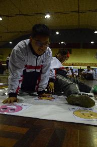 圖右 : 學員專注玩吹銅板遊戲,志工、助教們也玩得不亦樂乎。[攝影者:黃莫筑 ]