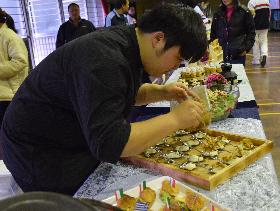 圖右 : 任職西餐廚師的學長簡于傑,特來為大家製作點心共度溫馨盛會。[攝影者:黃莫筑 ]
