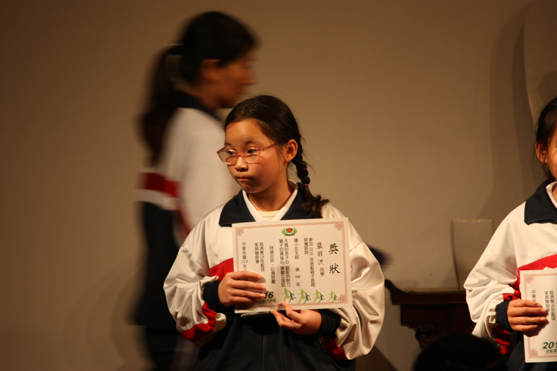 圖左:國小女子組來自楊梅慈籃的張羽淇,就讀上田國小四年級,個子嬌小的她和媽媽首次報名參加,她分享著,在路跑中段發現不見熟悉的組員,內心有點惶恐,一份自我使命感,繼續往前跑……[攝影者:張志豪、盧碧芳]