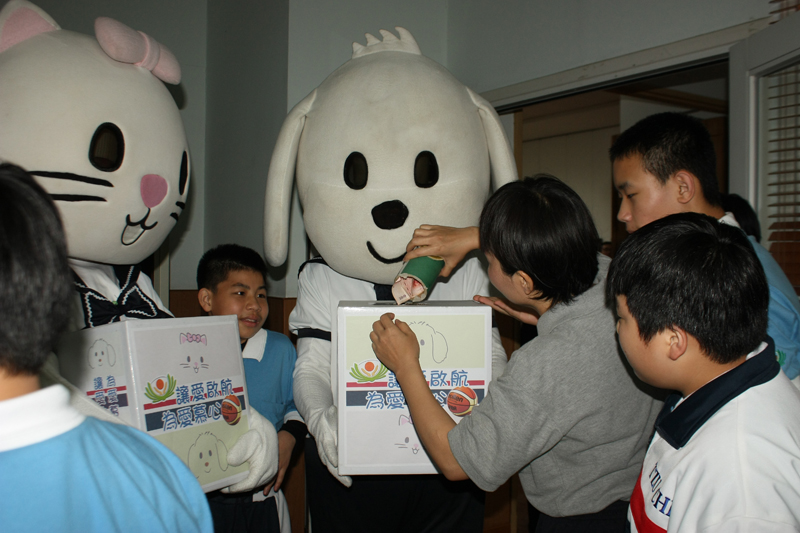 圖右:愛心是可以感染的,匯集楊梅慈籃的愛心捐款,讓當日的愛心義賣金額衝、衝、衝,而超人氣大愛狗和感恩貓,捧著愛心箱也募到不少善款。[攝影者:張志豪、盧碧芳]