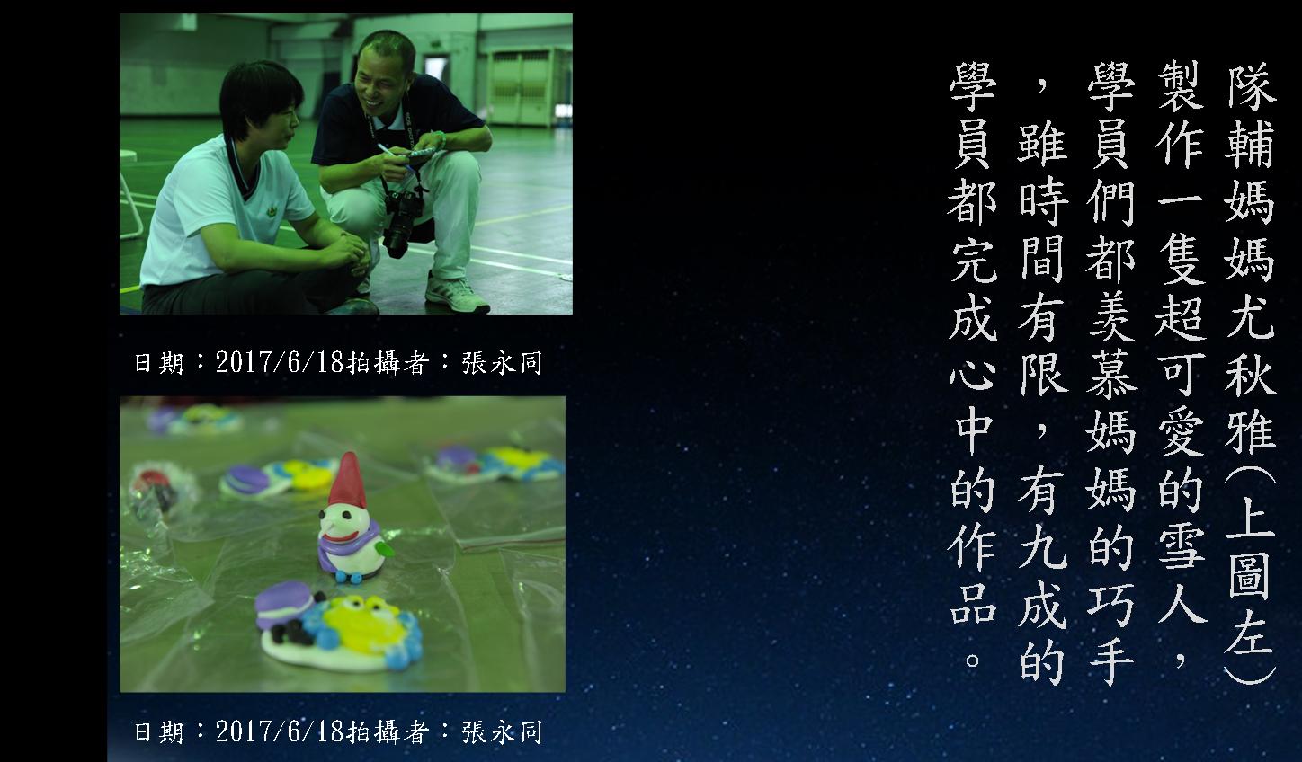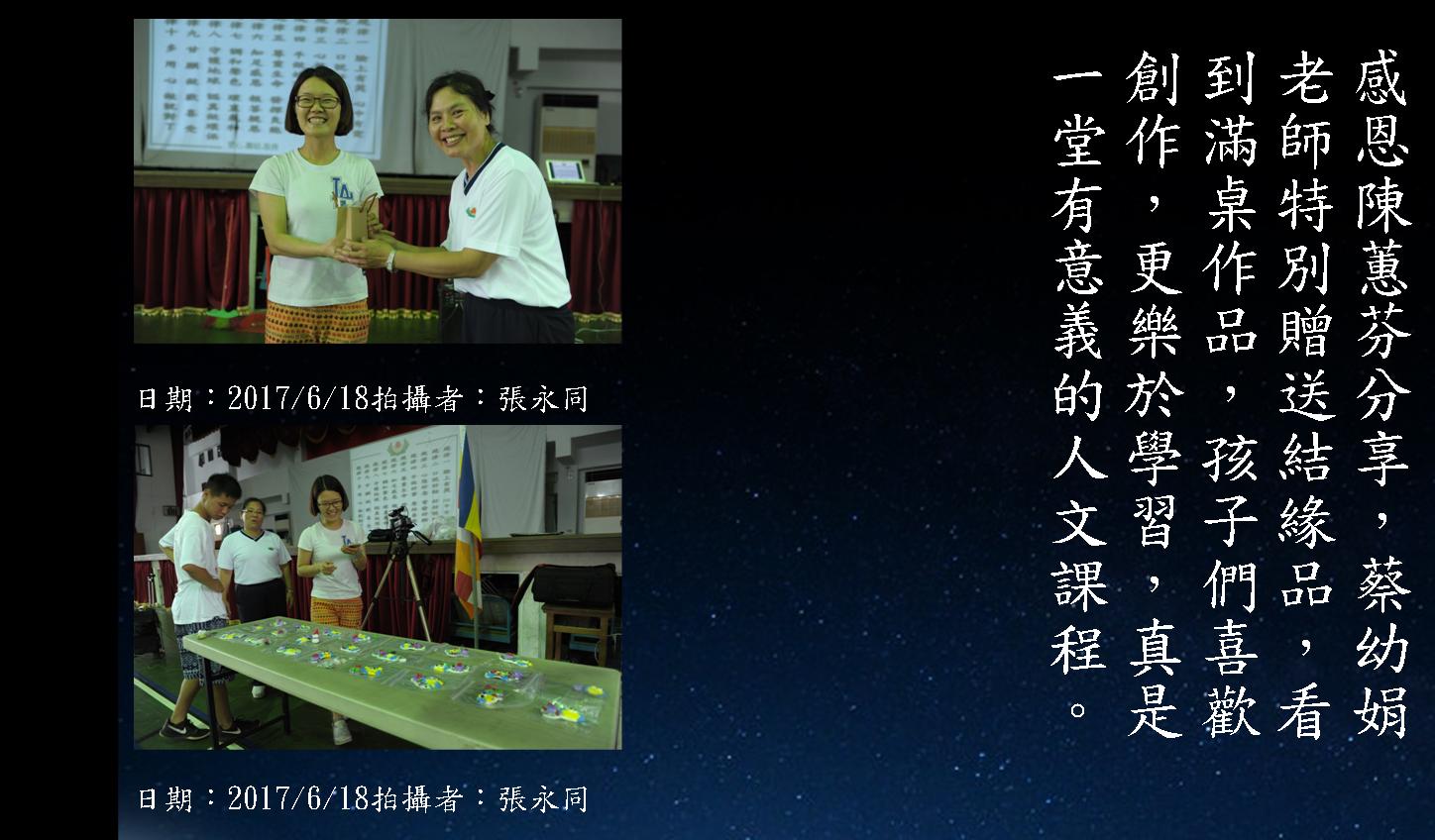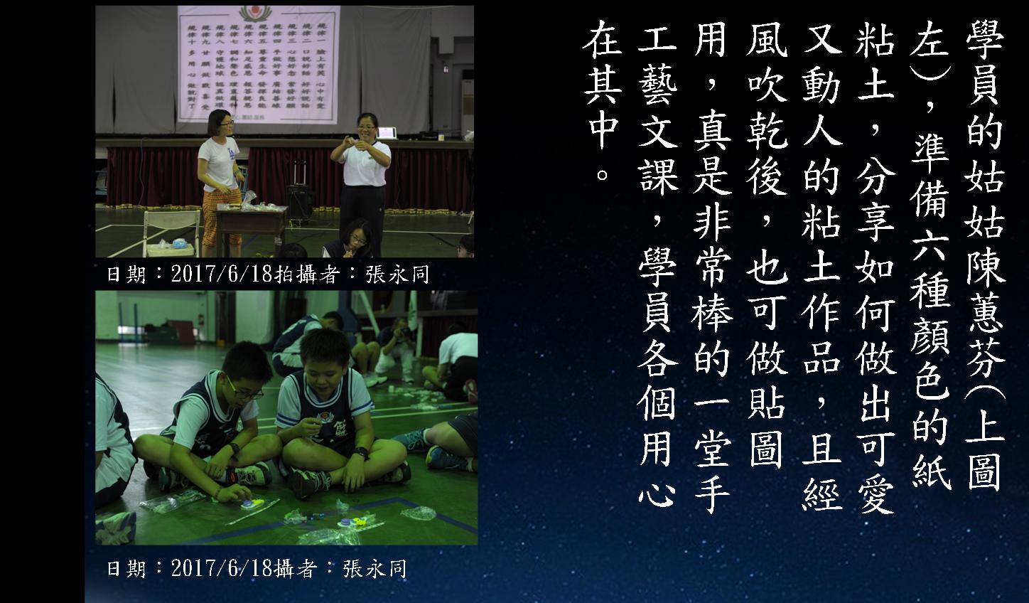梅雨季降臨大地,各地都有災情傳出,彰化位於中部,受大地的愛載與人的善念,災情是最小的一個地區,慈籃學員們不畏懼大雨,仍準時的出現在鹿港國中室球場上,雖有點不方便,屋頂漏水,依舊阻止不了學習上課的渴望,今日非常棒的紙粘土,在大雨悄悄開始。