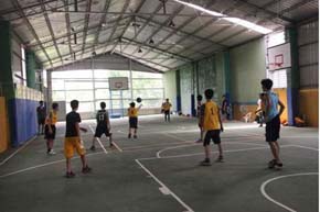 圖右 :目前就讀大一(右三)羅文傑打了五年慈籃,訴說著當年在球隊有著許多美好的回憶,很高興慈藍隊終於有屬於自己的家,能夠安定下來,不用到處借場地,過去是師姑、師伯陪著長大,希望日後有放假,也能夠回來陪著學弟妹打球一起長大。