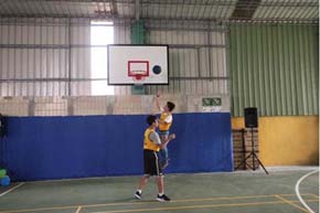 圖左 :從小學三年級就加入籃球隊的鄭紹甫,做夢都會夢到回來打球了,聽說籃球隊開始又招生了,一早就穿著球隊制服來到會場,高興回憶著以前還沒加入球隊時,拿到球就拼命投。