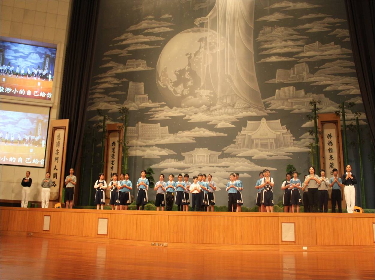 圖右 :活動持續展開下午由各區域慈籃家族表演一系列節目,竹南呈現了手語演繹「給你」,隊輔程伊伶師姊感動表示很多學員與家長志工都是第一次參加,從羞澀到台風穩健