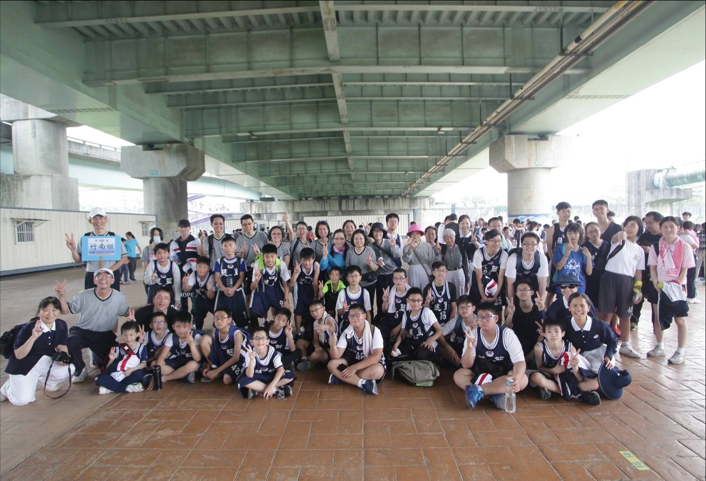 一年一度的「慈濟青少年籃球家族聯誼會(慈籃)--親子路跑嘉年華會」,於新北市板橋浮洲橋下河堤舉辦;一早五點半,天灰矇矇微微亮時,竹南慈籃家人們,大手牽小手於竹南國泰連絡點集合,學員加上工作人員共五十八位,由林瑞合師兄與程伊伶師姊帶隊,浩浩蕩蕩坐上遊覽車出發北上,參加慈籃家族的年度盛事,此次的路跑活動分成國小男女組、國中男女組、高中男女組以及師姑、師伯組,分別有三點九公里與七點二公里的賽程。依全台各區域整隊報到後,大會帶領大家做活動前的熱身操。