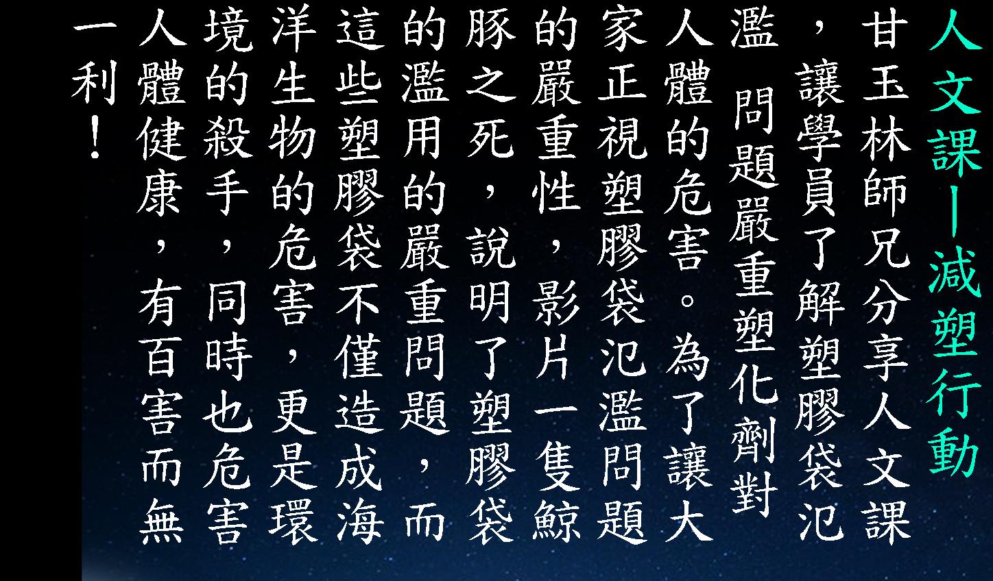 竹南慈籃活動 人文課 - 減塑行動 守護地球