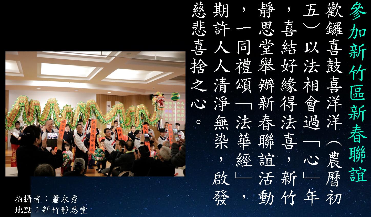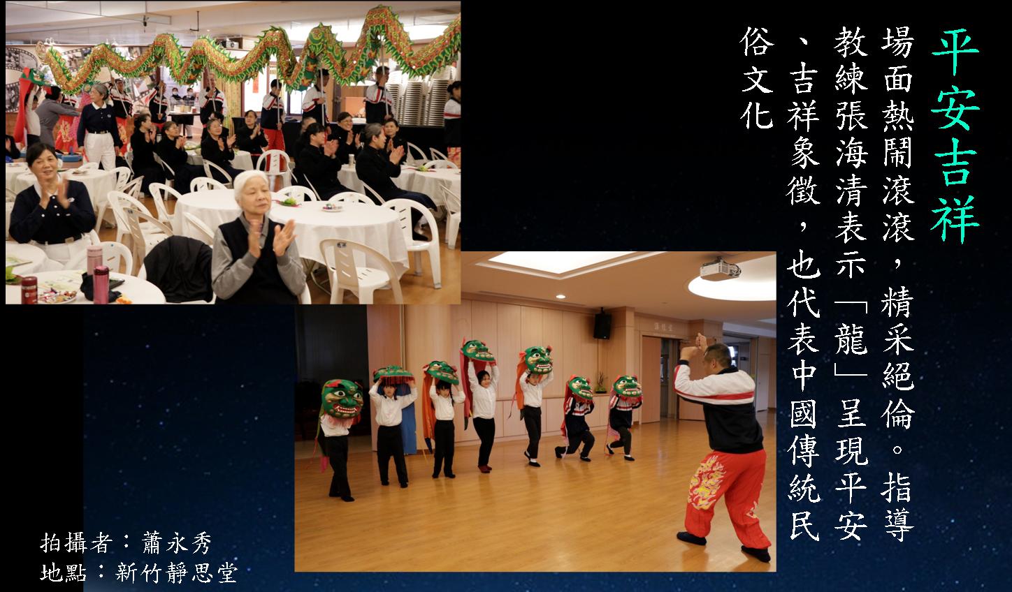 因緣殊勝,讓孩子們有機會接觸,「舞龍」講求團隊合作,少一人就無法表演,間距沒保持好會相撞在一起,讓孩子們了解到團隊精神重要性;引領在最前面,手持「龍珠」慈籃隊員謝朱煜深深體會到扮演領導者困難度,行走中不能太快亦不能太慢或自己走自己的,「龍珠」不能拿太高或太低,若拿太低就像是特大的棒棒糖,他表示雖然很緊張,但每一場演出,就是一次學習機會。