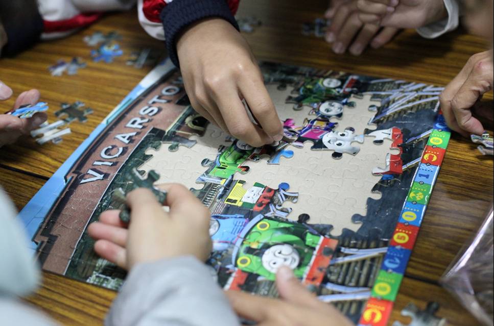2017.01.24,人文課合作拼圖,一百片的拼圖在時間內完成,考驗的合和互協、工作分配無論用什麼方式比較快完...