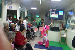 宛儒姊姊︰「長青安養院比我想像中的還要有活力,最讓我有感觸的是,我們到了之後,志工們一個個推著老人家們出來參與活動。我想,比起來自社會的關懷,安養院裡的老人家們最希望的應該還是來自子女的關心吧。」
