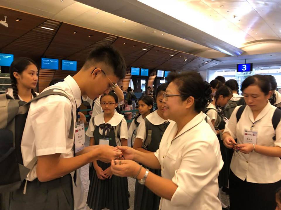 出發前,校長帶了師公給所有孩子的祝福,並且親手將師公的祝福ㄧㄧ送給孩子