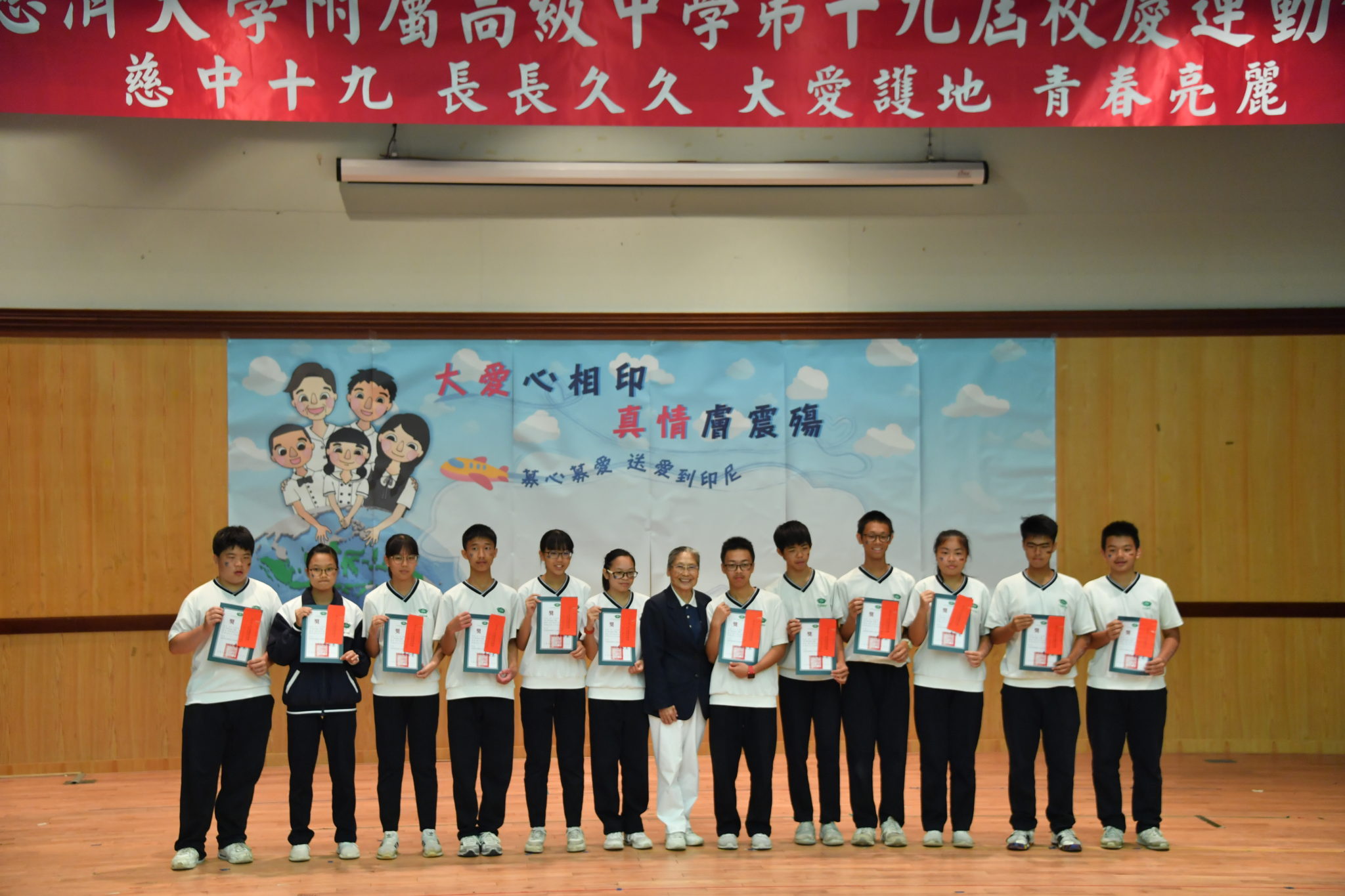 特別的是,今年校慶慶典上不只表揚在慈中服務滿十週年的老師,也鼓勵獲得今年花蓮縣愛心楷模教育人員優良教師,而本校幼兒園榮獲花蓮縣優良卓越幼兒園,更人讚嘆。再來,頒發世界發明獎項,本校田婕妤及田閎宇榮獲第三十二屆日本東京天才創新發明獎金牌;國一邱浩祥獲得2018 IEYI世界青少年創客發明展特別貢獻獎,都是台灣之光。最後,本校今年國三會考成績亮眼,26個5A全縣第一,在此頒發國中教育會考成績5A及4A獎學金,鼓勵優秀學子直升慈中。