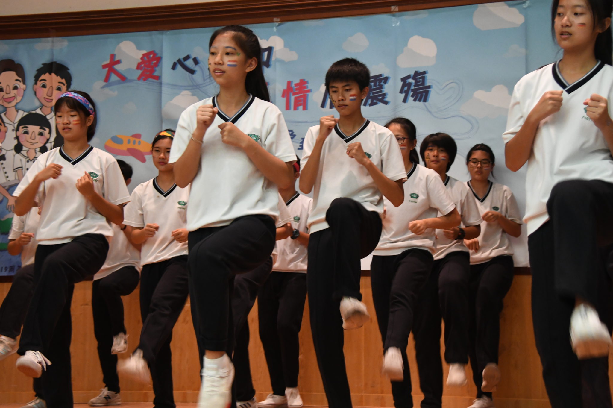 接著,由慈中小全體師生及慈懿師兄師姐們一起演繹道氣十足的「大地和風拳」,在靜定中呈現中國武術之美,是健身、是養生、更是一份對自我修為的提升、對世界和平的祝福。高一全體同學帶來的「武林高手」活力健康操,與幼兒園小可愛們的「擁抱世界,擁抱你」,獲得來賓、家長最熱情的掌聲。最後壓軸的是,幼兒園師生「為尼募愛 T-shirt 義賣走秀」活動,這是幼兒園孩子為印尼地震災民繪製的畫,印製在T-shirt上進行義賣,將所得捐給印尼災民,精彩的走秀,獲得與會來賓、家長的熱烈響應及滿堂喝采!