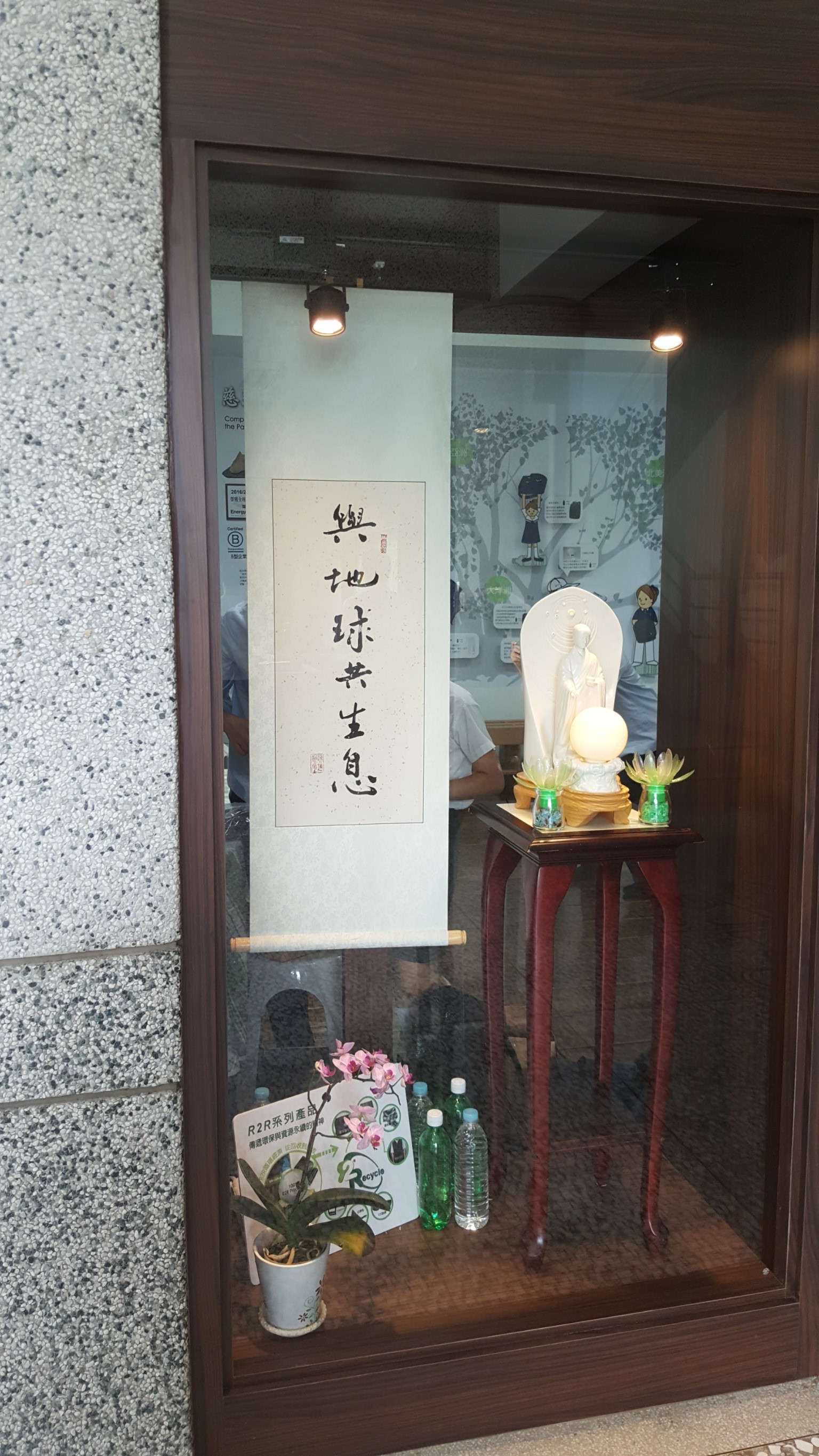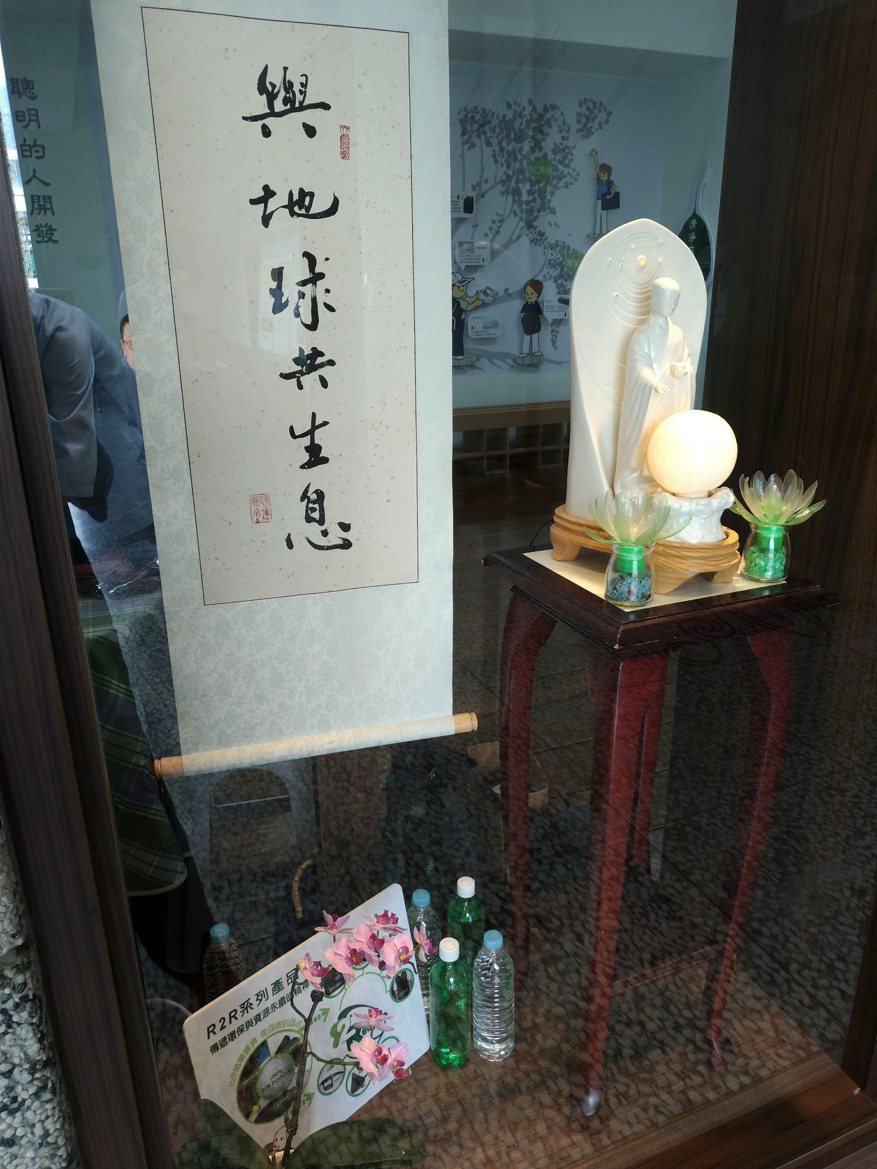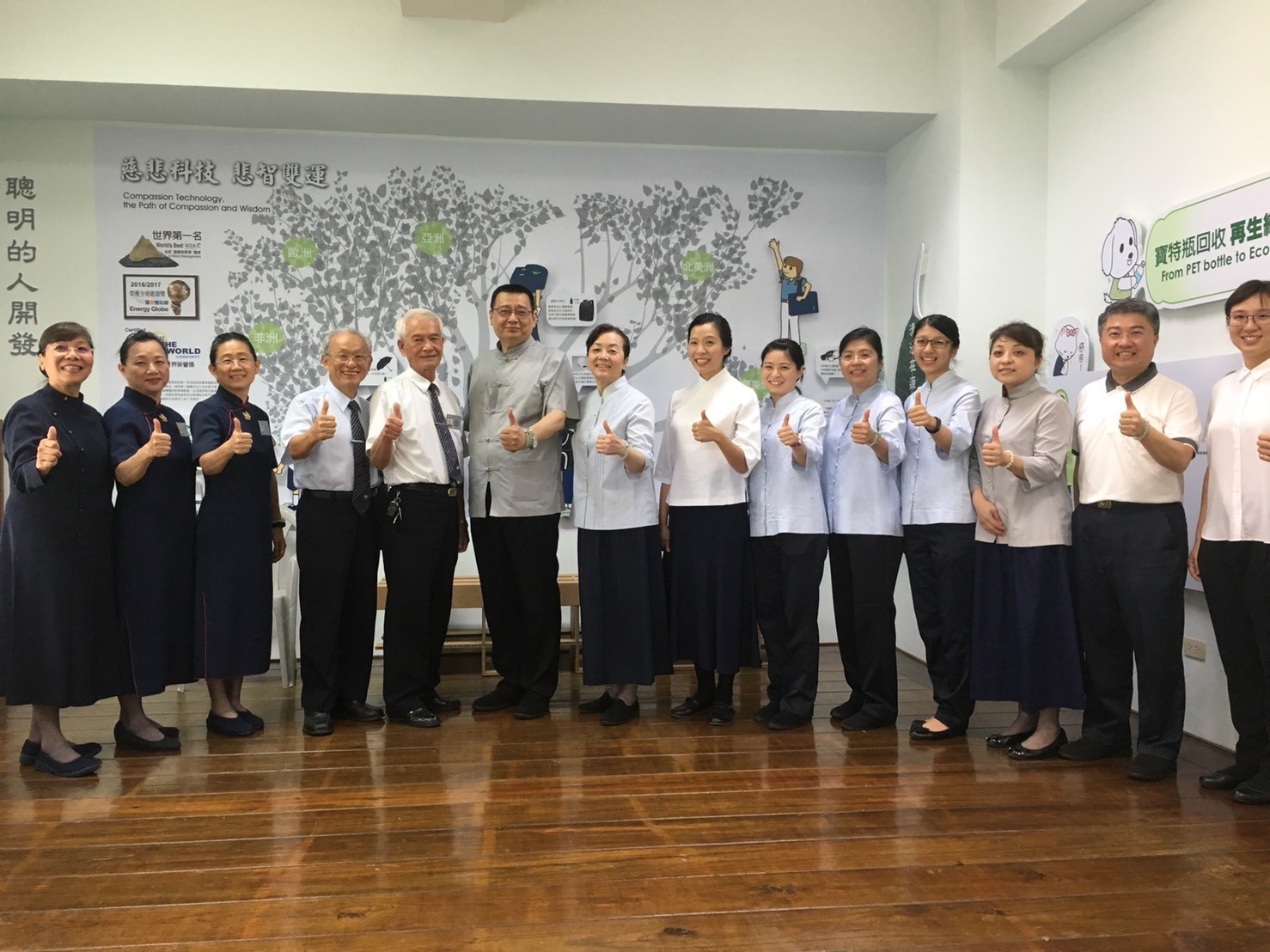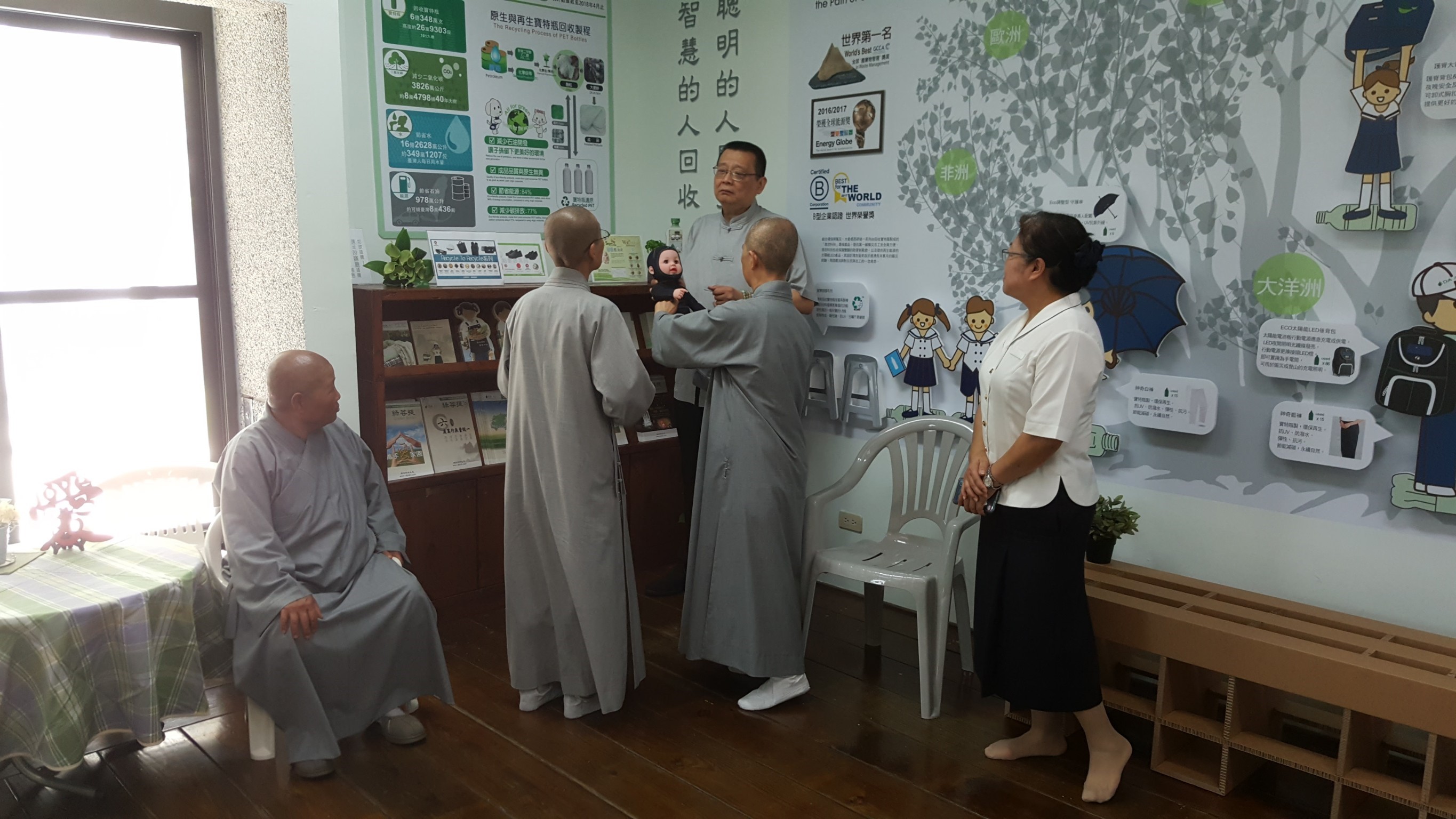 靜思書軒營運長 蔡青兒:「我們的精神來源來自於上人的心, 上人的方向, 所以靜思書軒給予一個方向, 都是上人的法 落實在慈濟宗門,就是在我們這個大愛感恩的館, 把它力行變成是,如何愛護這個大地 。」
