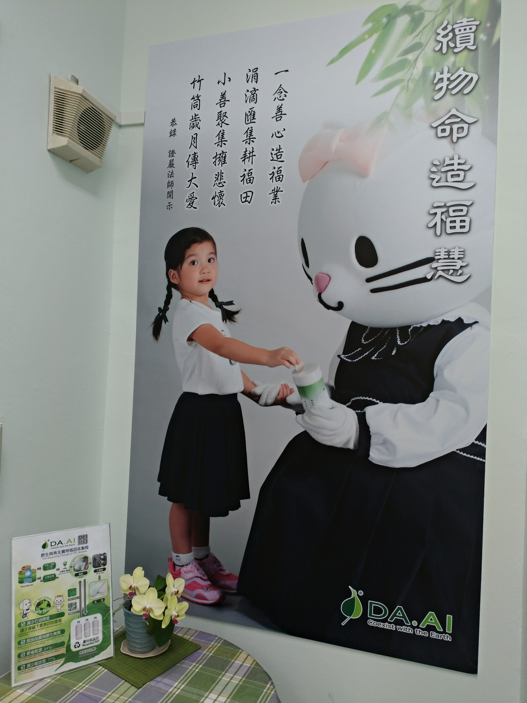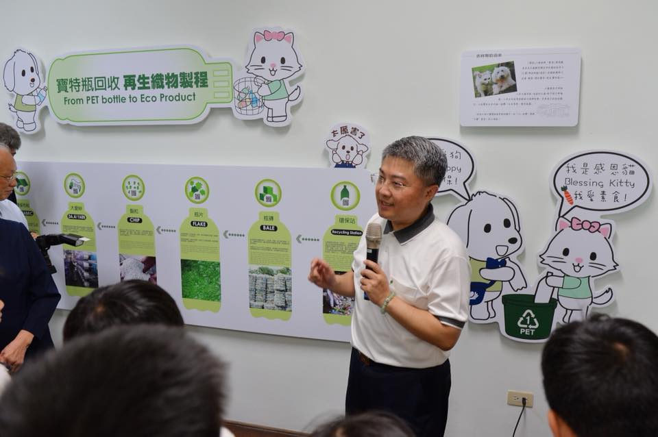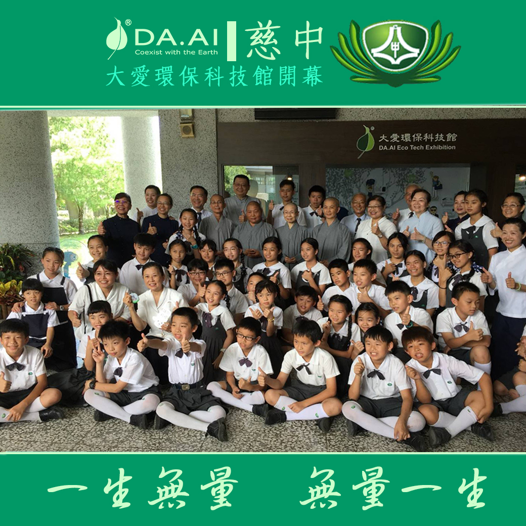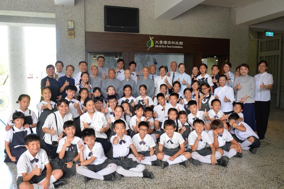 大愛環保科技館正式在慈濟大學附中國小部成立,也是慈濟四所校園裡的第一所,讓孩子們了解寶特瓶如何變廢為寶,重生成為救災設備還有衣物。