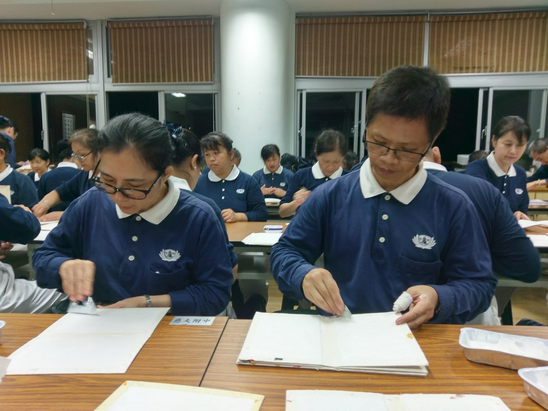 2018.11.09 又到製作手工書的時間囉!有就意味著明年即將有一群孩子即將踏出校門奔往各自前程,歲月如梭、時間飛逝,轉眼間三年即將劃下圓滿的句點。比較粗重的部分由懿德爸爸處理,懿德媽媽則協助將鑽好的紙張,黏貼成冊,好讓畢業班的爸媽可以帶回家製作手工書,將三年的相處做成回憶送給孩子當畢業禮物。