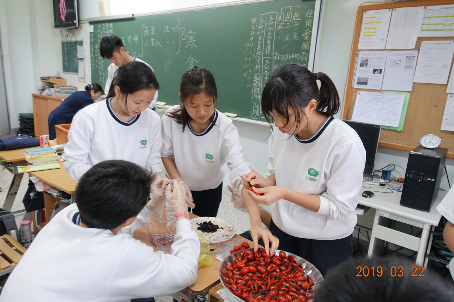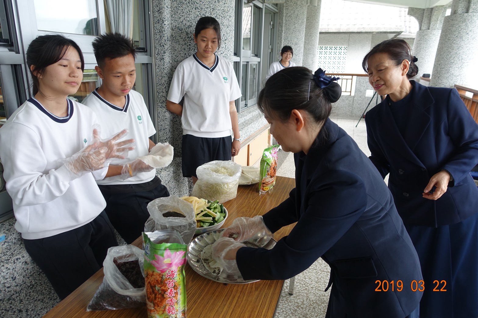 麗華媽媽先以深入淺出的方式,講述寒食節的歷史故事與現代生活愛地球,大家一起環保素食相互結合,讓孩子們自己動手,切切洗洗食材包潤餅,品嚐蔬果香,做好的成品先請師長享用,好貼心啊!