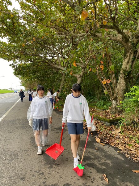 11/13第二十一屆校慶運動會,有手護洄瀾清淨心靈的活動,班上分配的區域為往慈科大的路上,孩子很認真清掃乾枯的樹葉,同時在樹下發現一包包居民丟棄的垃圾,同學一一將它拾起,掃過的街道變乾淨囉!