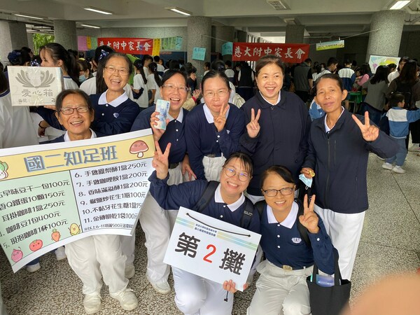 11/14因天降甘露,讓原本運動會的進場改在演藝廳進行,操場上的競賽活動暫緩,而園遊會活動如火如荼展開,大家卯出全力,大聲叫賣,順利完售所有準備的物品,在歡笑聲中結束有意義的活動。