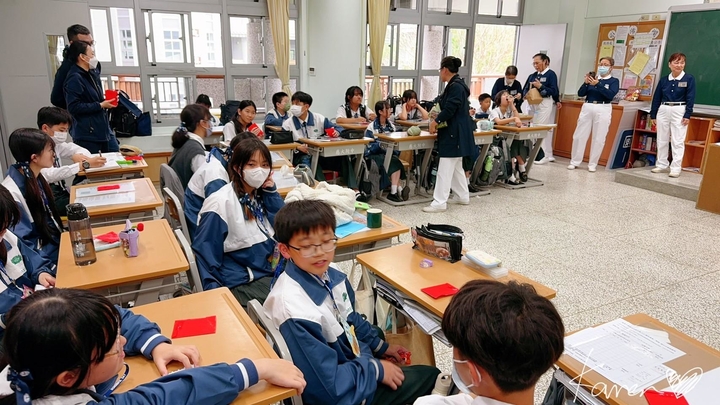 就讀慈中的孩子除了接收正規教育外,學校也加入人文教育,為此 孩子們對地球暖化議題很有感,勇於回答媽媽所提出的問題。