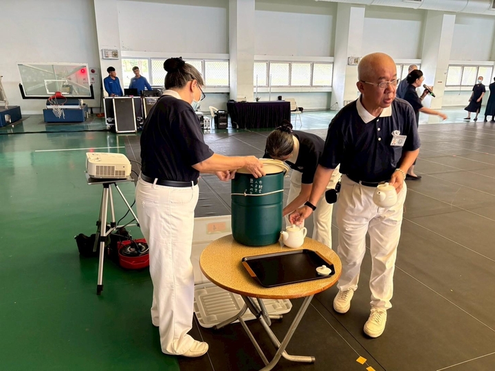 9月18日前置作業,動員上百位慈誠懿德爸媽,從打掃、場佈、大型地毯鋪設、幸福門花藝設計、生活組奉茶準備、以禮相贈禮品組,還有節目演練,手語、國術、戲劇等等,在合和互協下綿密展開。