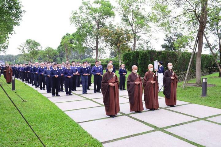◎精舍巡禮,我們這一組是由德邁師父為我們導覽。德邁師父帶領我們進到主堂,從建築設計介紹,主堂設計採自然生態,沒有現代化空調,外觀人字屋頂,意義在於人和,代表以人為本的精神,顯現了無限的智慧與美學。坐在裡面抬頭看是法船的船帆,用一片片拼成的,空氣可以流通,地板有出風口,落地窗有三層,紗窗可以防蚊,百葉窗可以通風透光,玻璃窗可以防潑雨,可說是一座綠建築設計,簡單樸實又莊嚴。