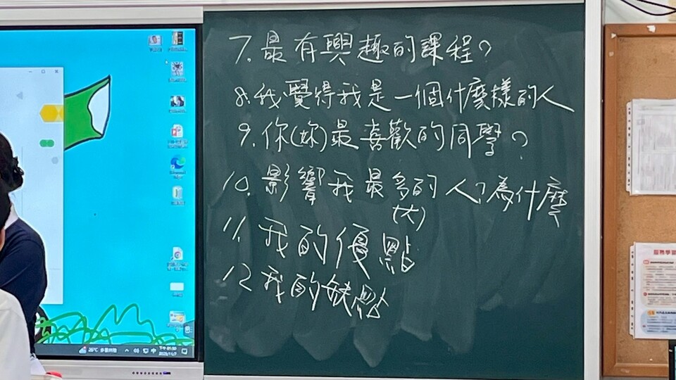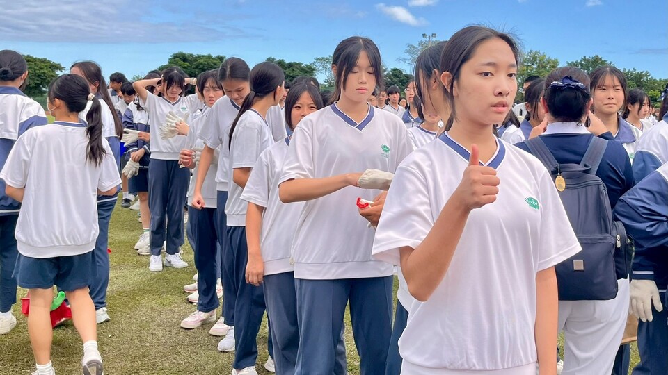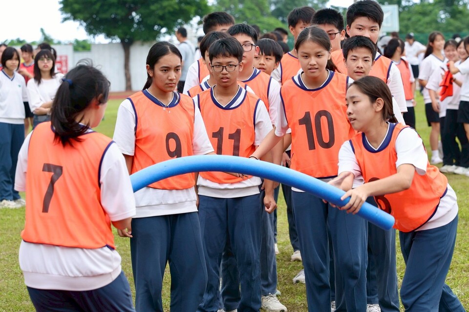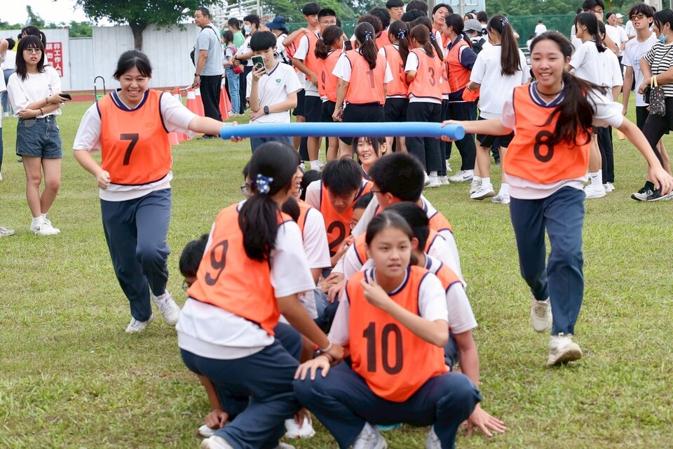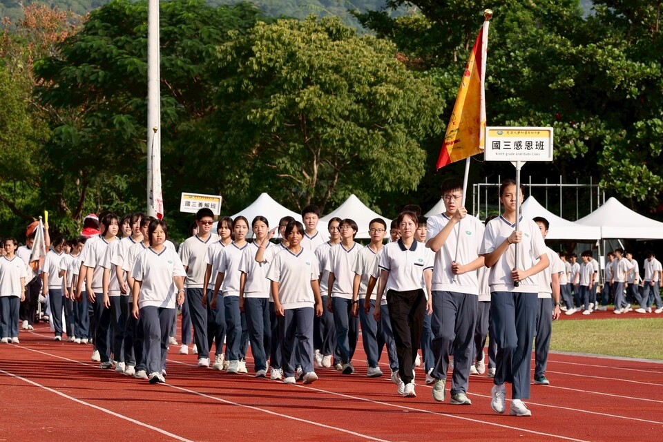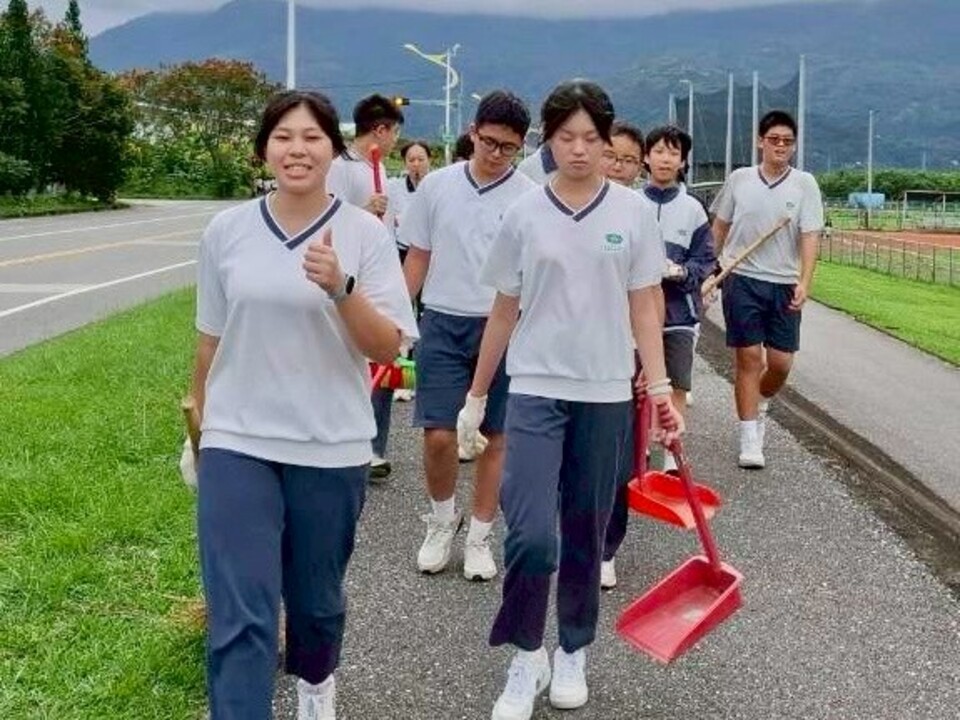 午餐後,大家回到班級與學生們同樂,天時爸即興要孩子填寫12個問題,彼此交流互動,為畢業紀念冊留伏筆。下午兩點整,整隊出發前往操場暖身,隨後由四號門到河堤進行環境清掃,展現慈濟守護洄瀾的行動力。同學們清掃結束後,由老師帶隊回到學校,並再次進行運動會進場的的彩排,為明天的盛會做最後準備。