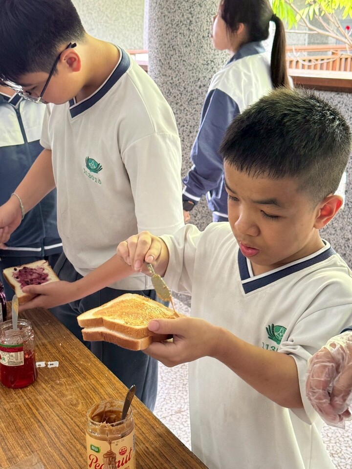 今天的主題是環保,小朋友非常踴躍發言,真的很棒。點心用吐司夾草莓醬、藍莓醬、花生醬、搭鮮奶、大家似乎有些不受控制的嗨,同學來借時間練手語,大部分都很乖,最後分組時,大家就真的很難靜下來,希望下次我們能與小朋友有更好的互動,留下更好回憶。