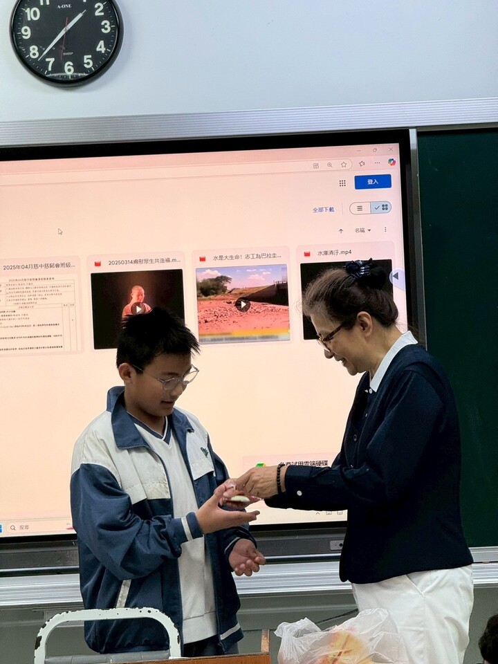 課務由進村爸爸擔任主講,主題是尊重生命茹素,還有珍惜水資源。
