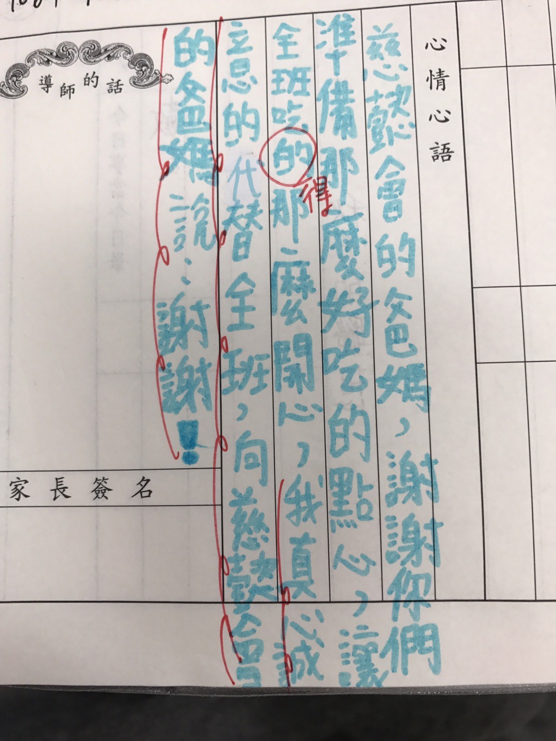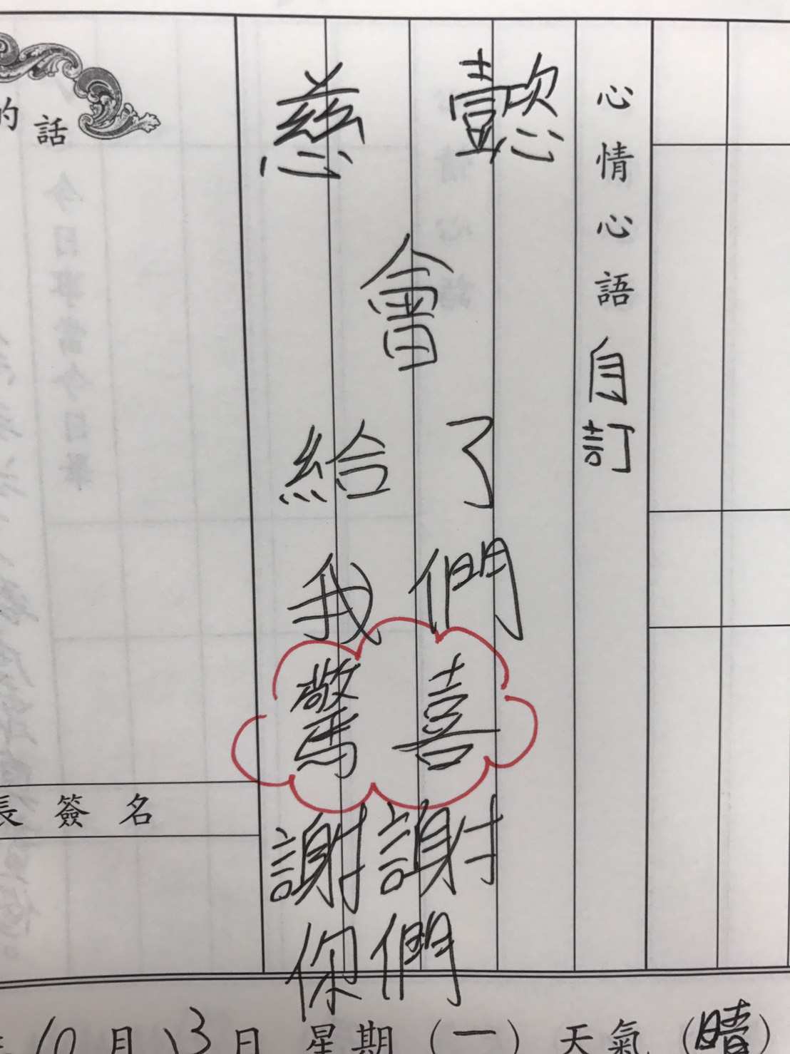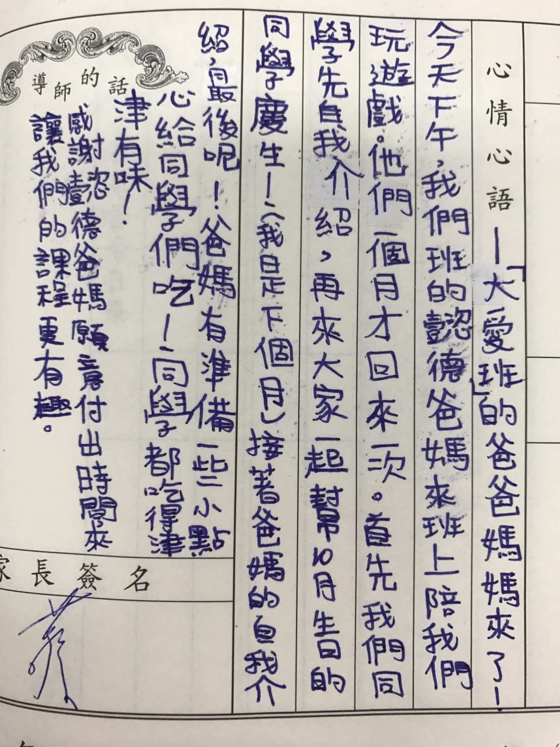 2017.10.20 慈懿日,孩子寫了感人的心得給懿德爸媽