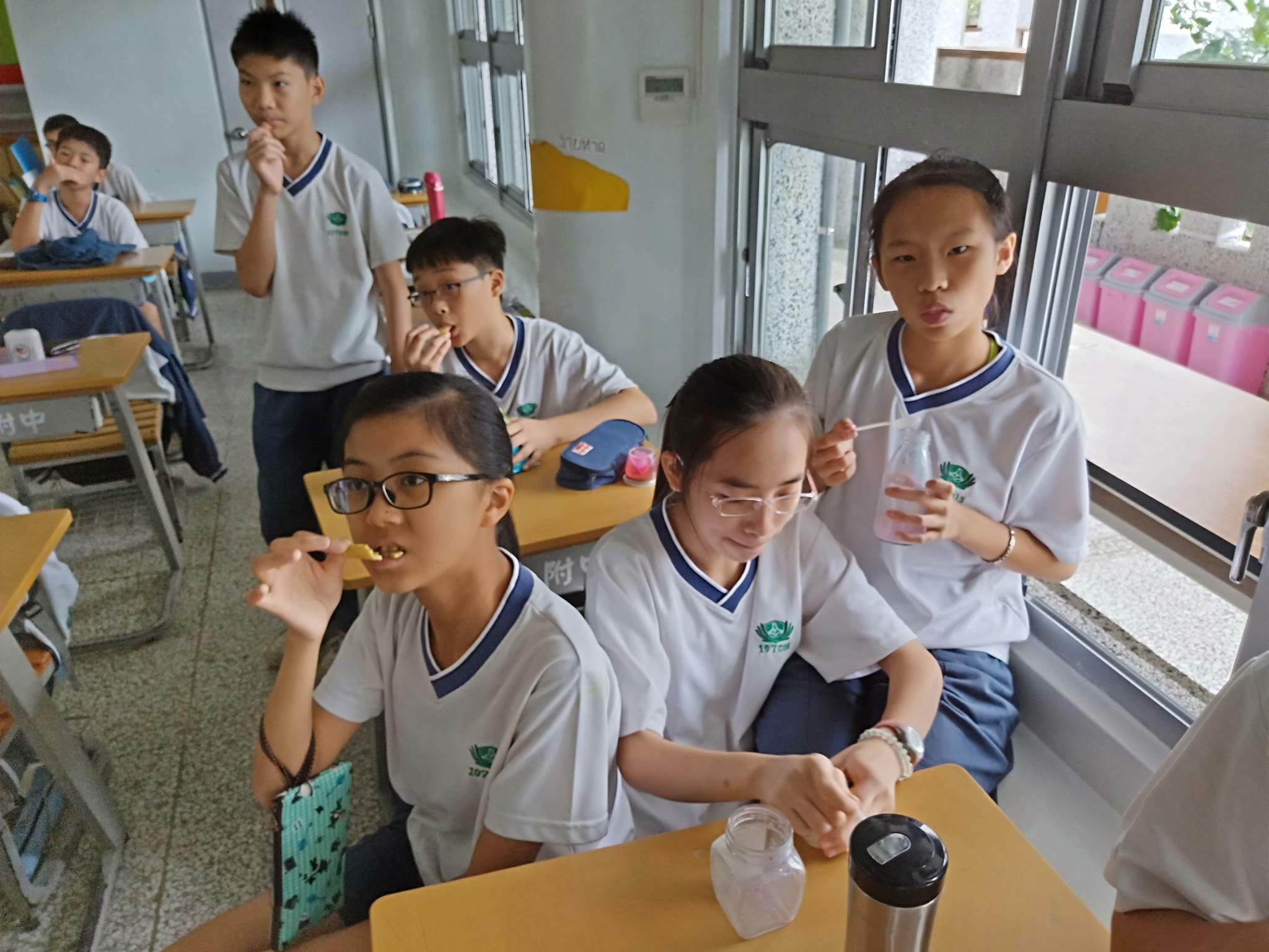 學生在教室,老師播放影片給同學觀賞,但是爸媽的愛心,還有家長愛心源源不斷,學生在教室依然享用許多義賣的美食。當然這個時候,懿德爸媽利用機會與家長互動,也可以增加對孩子的了解。