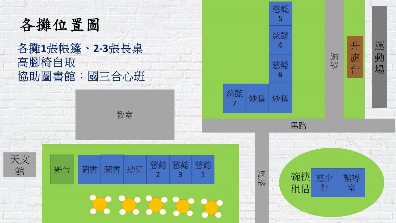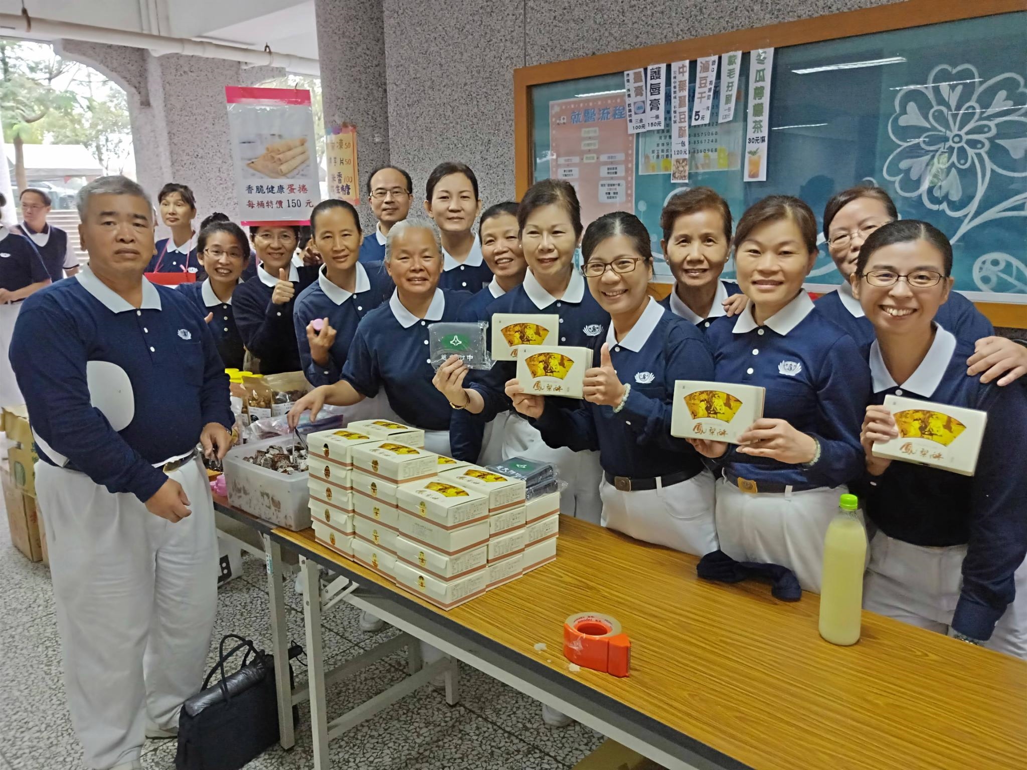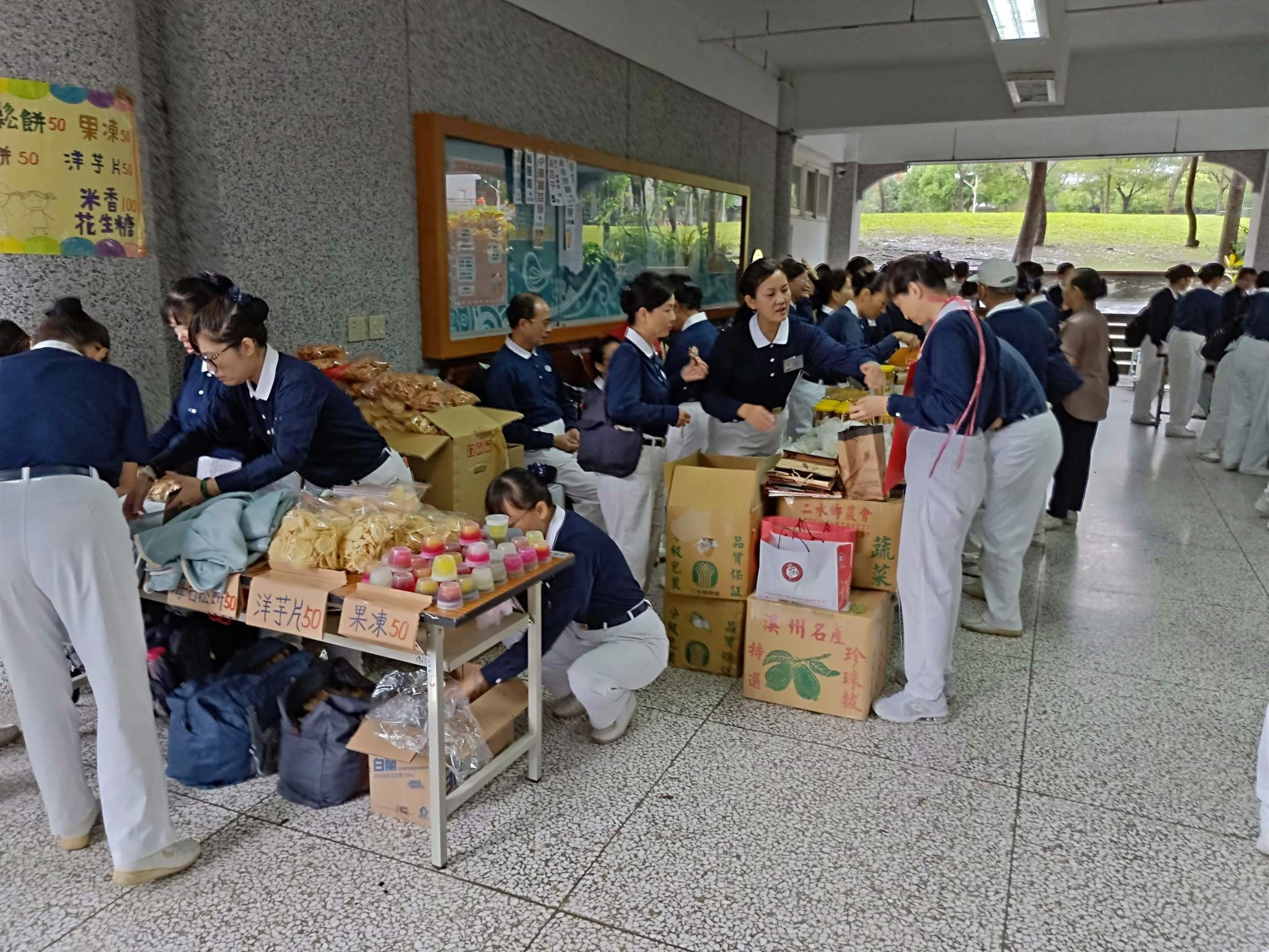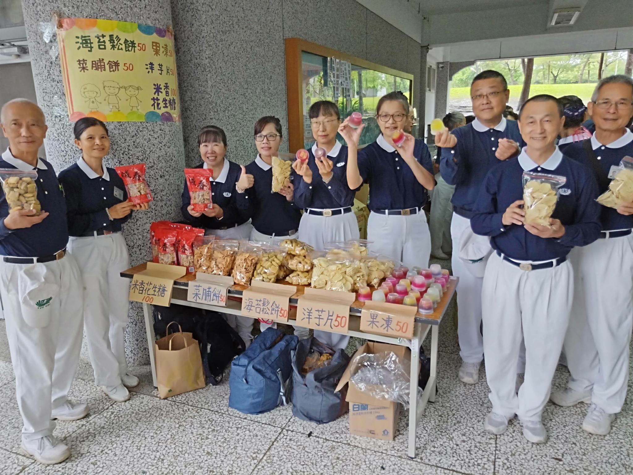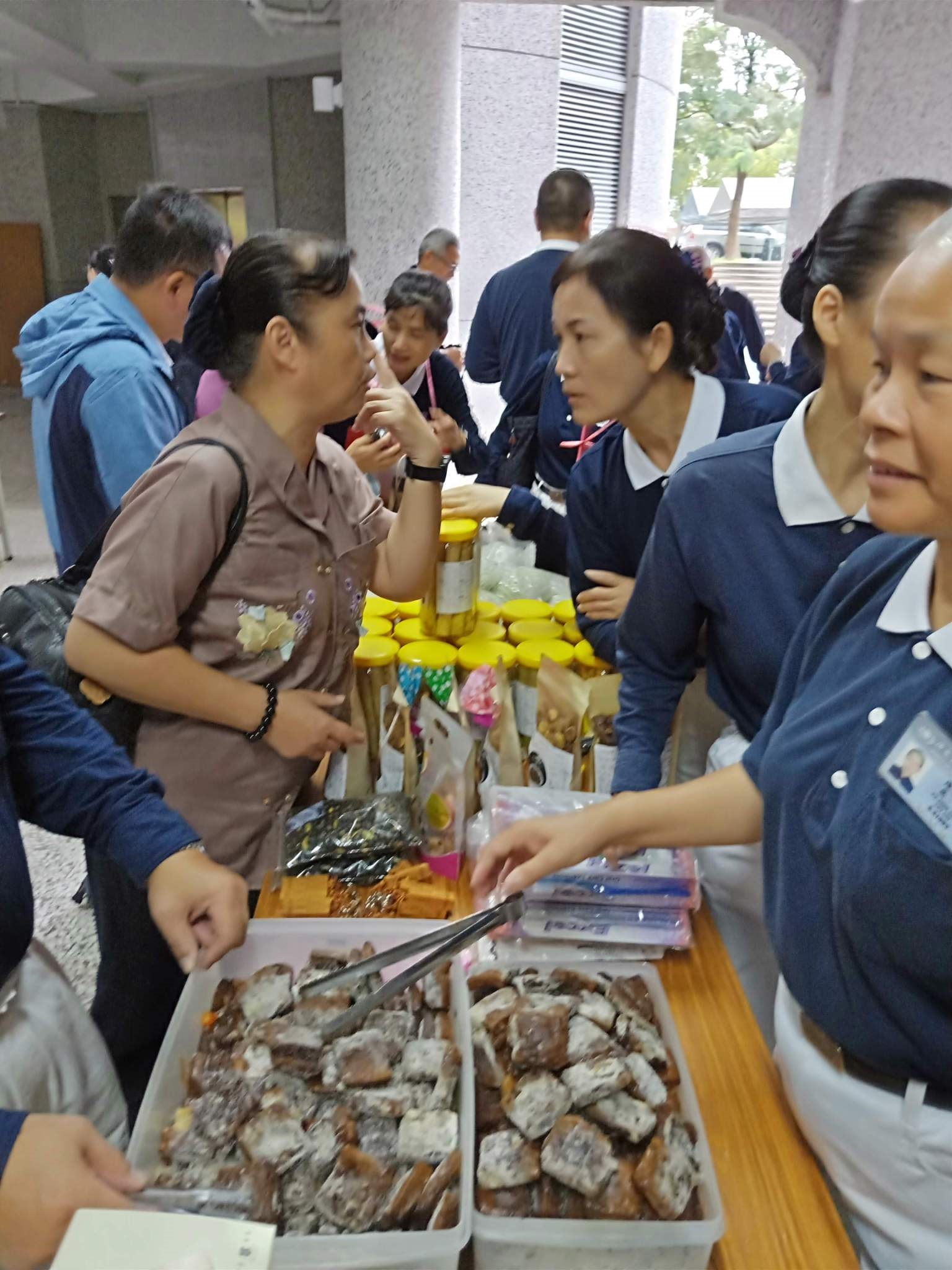 此時,慈懿會的義賣場地布置,也在一陣兵荒馬亂中就緒,我們是第一攤位,當天很多家長蒞臨,但演藝廳容納不下那麼多人,所以很多家長就開始逛義賣攤子,保健中心旁的場地較窄,感覺就是人潮洶湧。