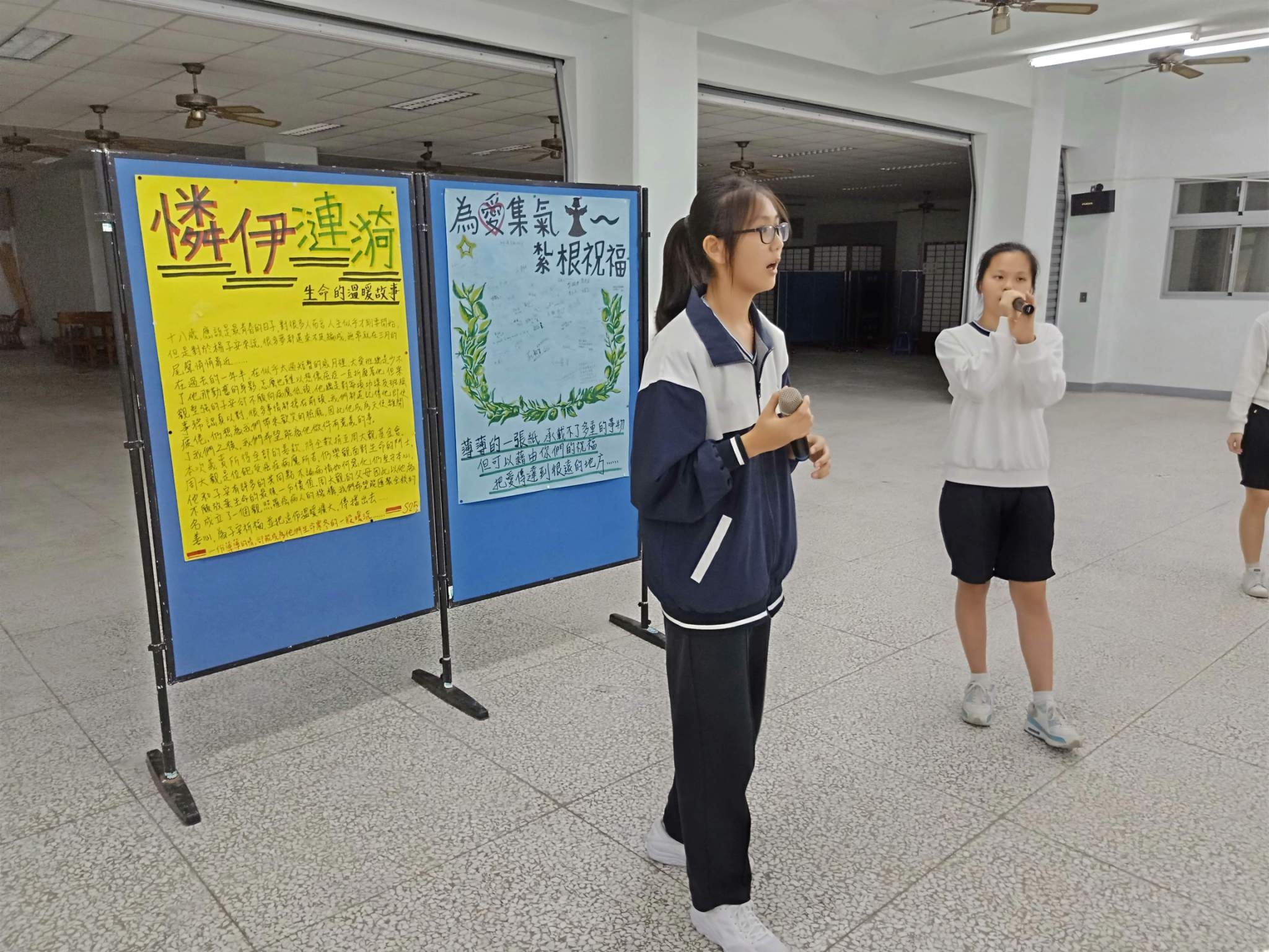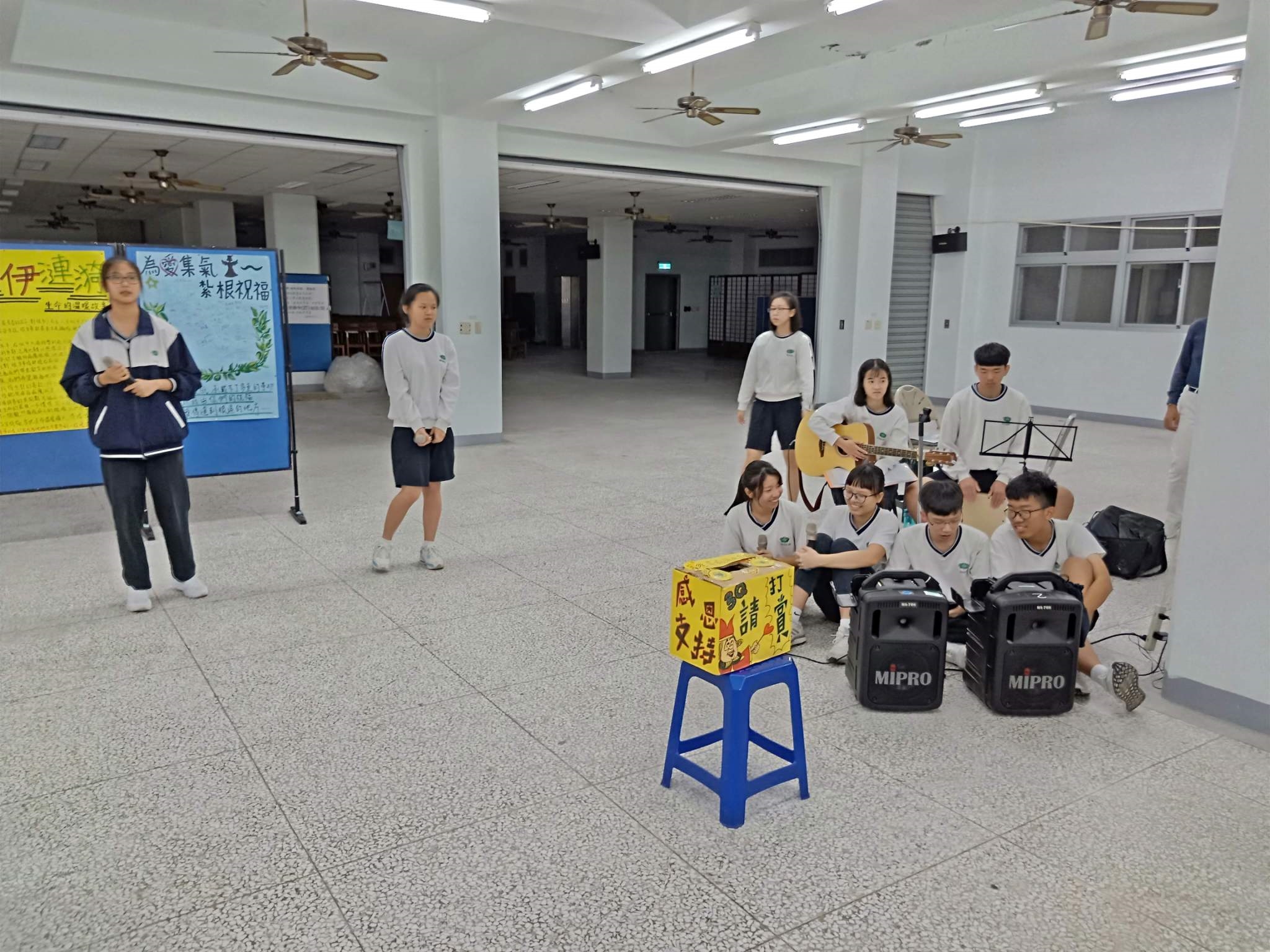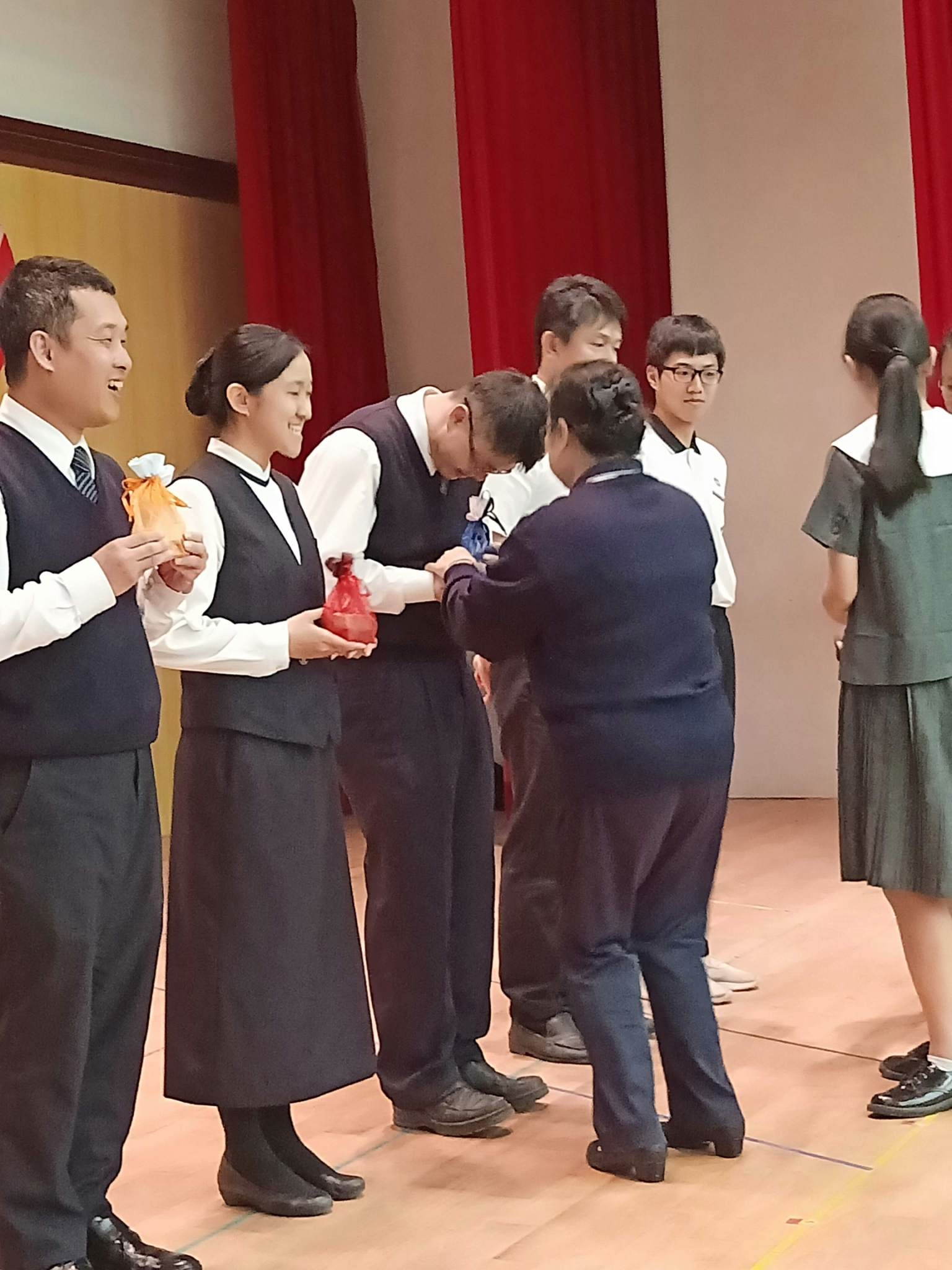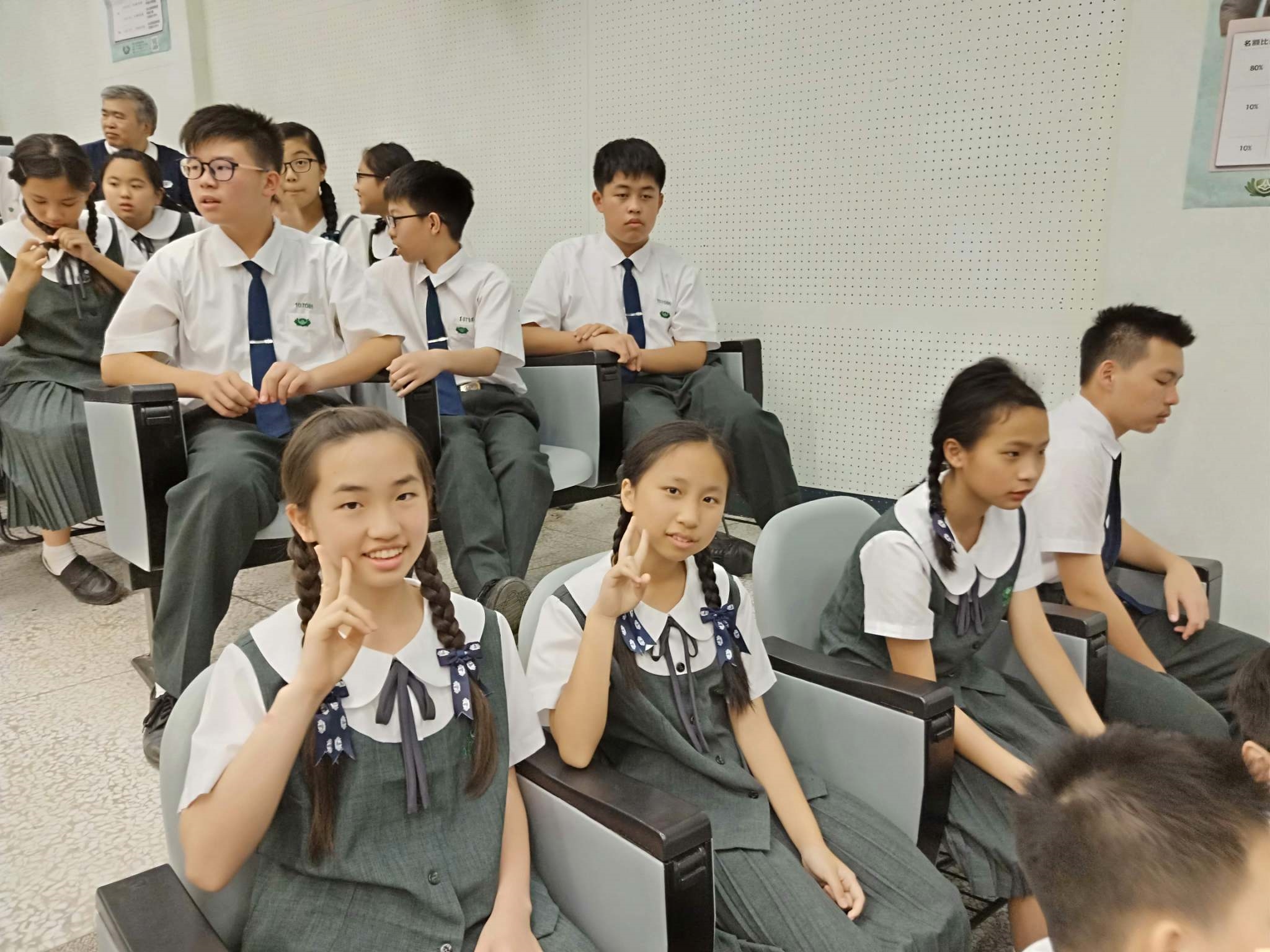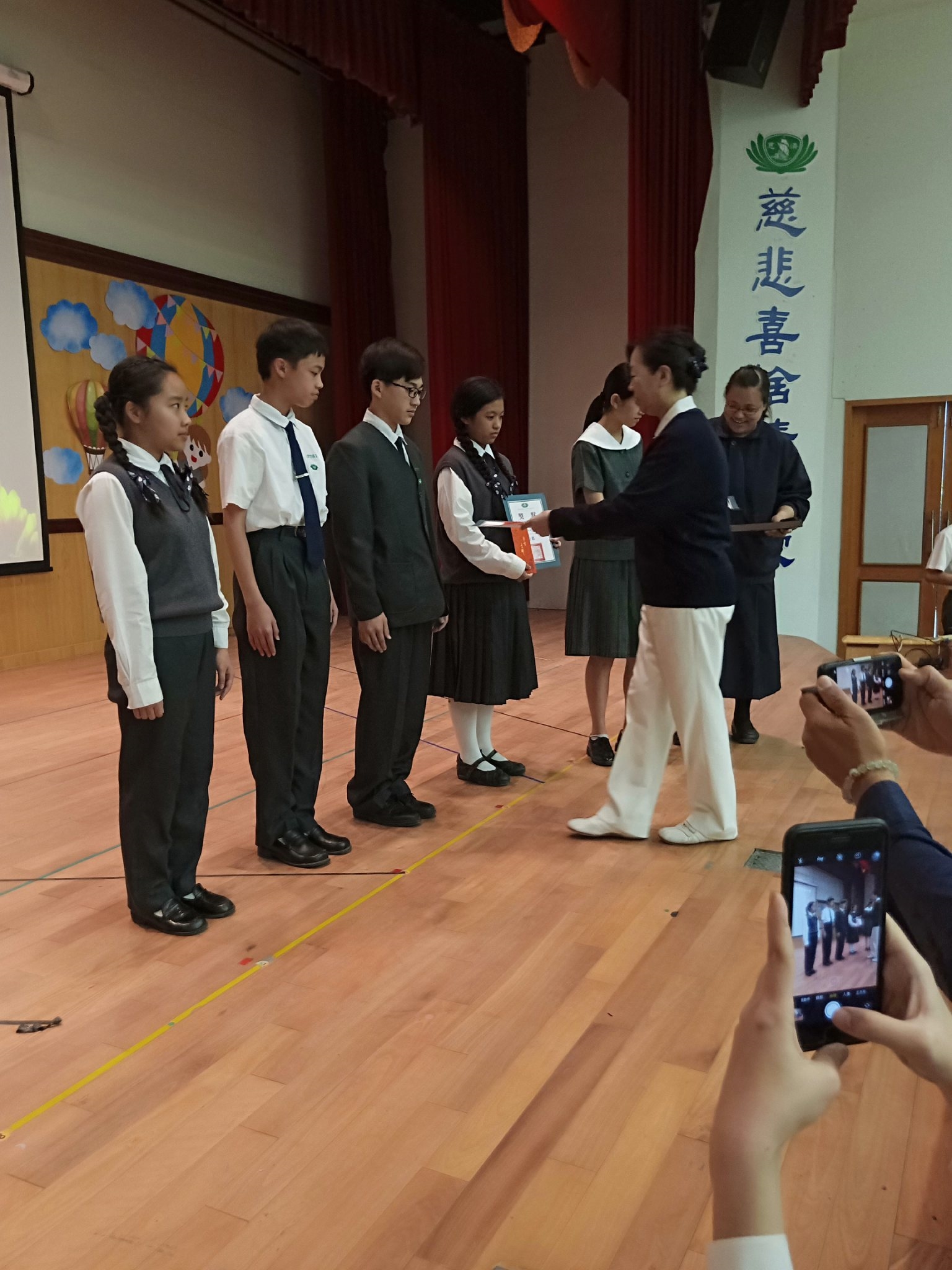 20190419當天慈懿日,家聚時間,國中一年級是手語比賽,在演藝廳,指定曲慈中校歌,本班自選曲「第二個家」;比賽前校長還要同學感恩爸媽的陪伴。