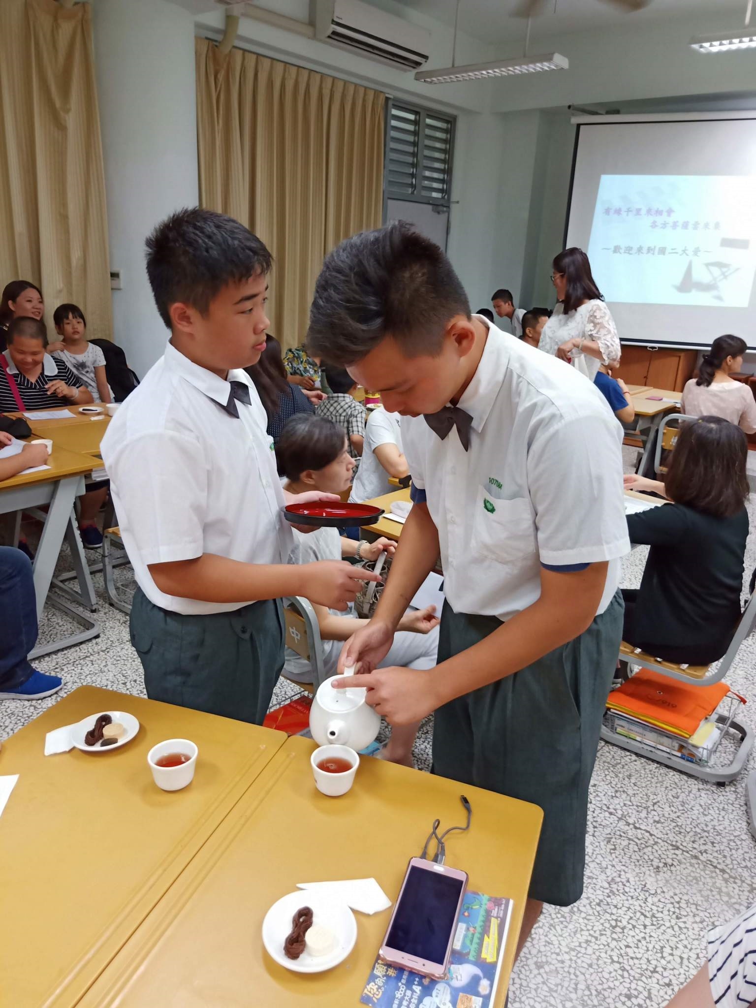 懿德爸媽張羅茶水點心,這次點心是今年爆紅的,台中某名店的蛋捲,還有鹿港的狀元糕,台南雅智媽媽,更是準備用煮的普洱茶,這茶頗受家長好評,一切準備就緒,就等下午班親會。