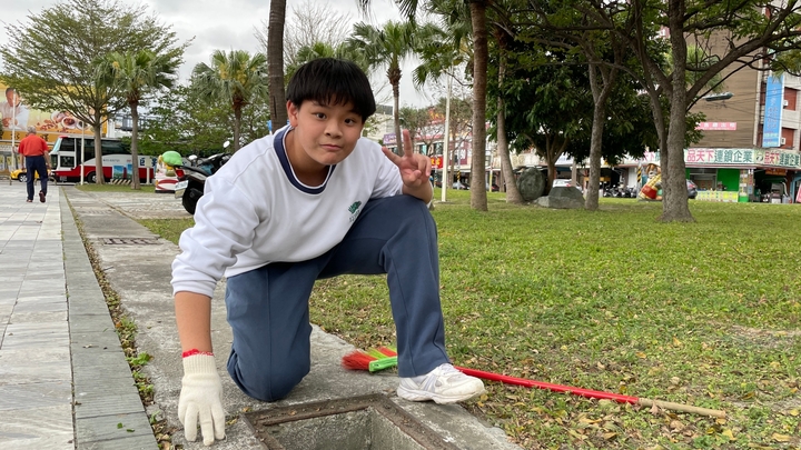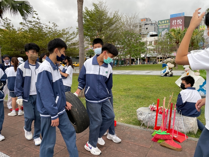 緊接著進行的是「手護洄瀾」活動,老師先講解分組名單及區域分配後,同學們即帶打掃工具至操場集合後搭車至定點火車站後站,展開今日的愛護家園活動,孩子們用心的進行樹葉、垃圾、菸蒂等清掃,哇!怎會有大顆的廢棄輪胎啊!還兩顆ㄟ