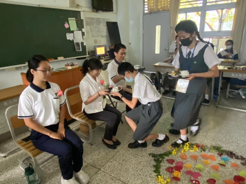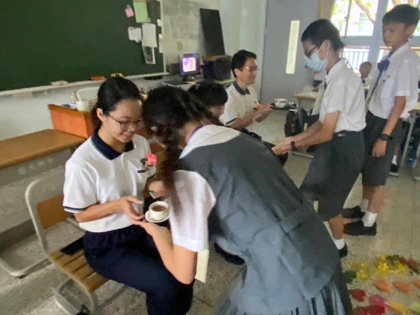 慈懿日進入新學期第一堂課,適逢九月教師節前,學校藉由「敬師謝師道感恩」活動,讓懿德爸媽與孩子們規劃在班上進行敬師謝師的活動,除了導師姿霈老師外還有實習老師跟振家主任到班上參與活動,首先引導孩子利用卡片寫出自己對老師心中的感恩之外,還以「你打開我的眼睛」這首歌獻給敬愛的老師,緊接著「敬師奉茶」,讓孩子以奉茶來感恩老師平常為他們默默付出的用心,也希望孩子把心擴展開來,用感恩心、正善的力量,迎接每一天,這是學校跟老師對學生最大的期待,也是敬師奉茶最大的意義。