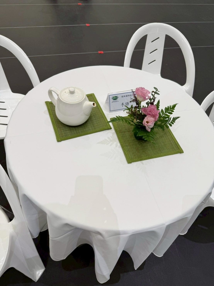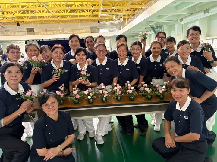 9月18日中午先行抵達慈中承擔敬師謝師茶會前置準備的工作人員,與同組的慈懿爸媽被分配到花藝區,準備桌花、花形拱門並佈置會場還有明天要給老師們的巧克力花160束等,經過大家同心協力完成。
