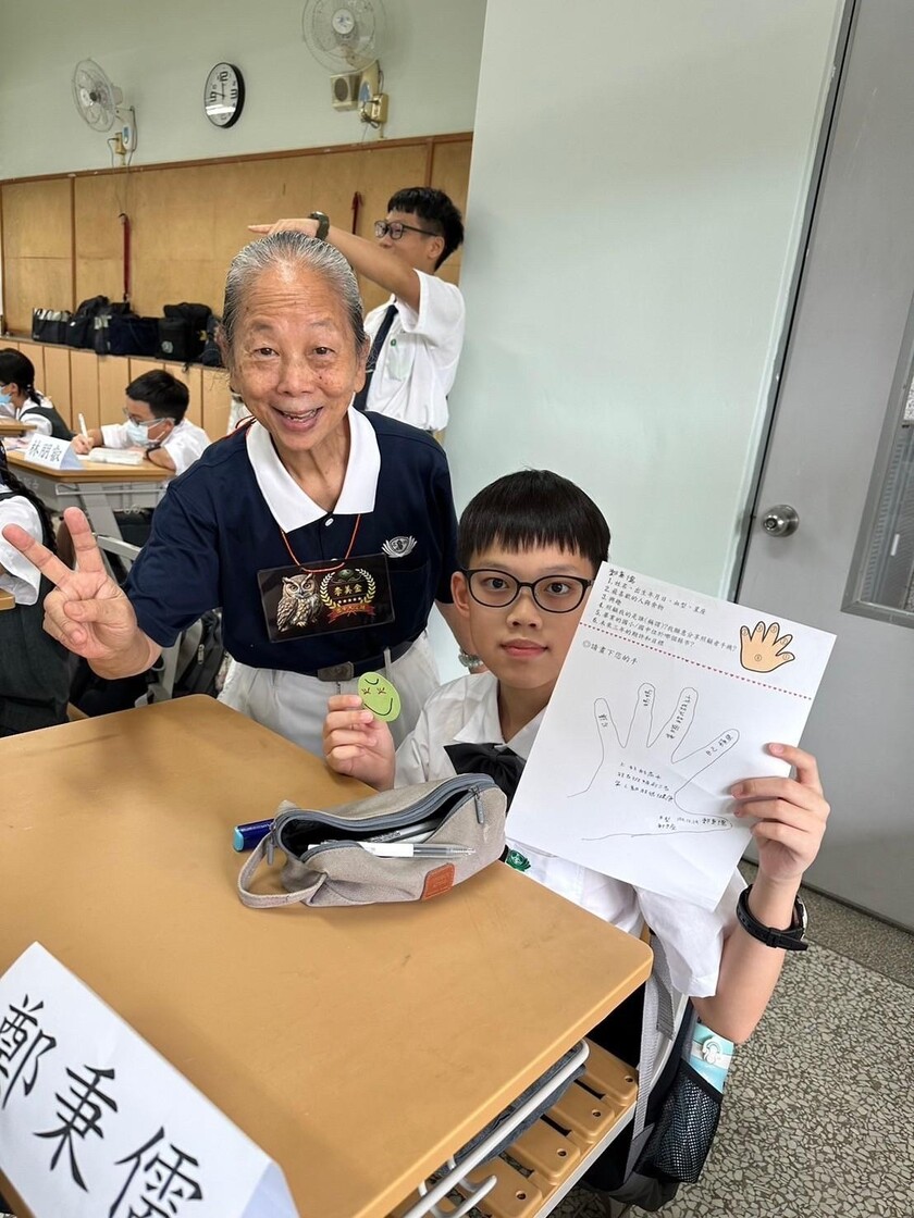 入班和班導師黃文怡及大愛班的孩子們相見歡爸媽自我介紹後,為每個孩子戴上芳華媽媽設計的貓頭鷹名牌,也為每個孩子拍照留下紀錄,以便協助爸媽把這些寶貝記在腦海中, 40人的班級的確有些考驗,美金媽引導孩子們寫五指圖,將他們的愛好想法寫下來,幫助爸媽盡快認識寶貝們。