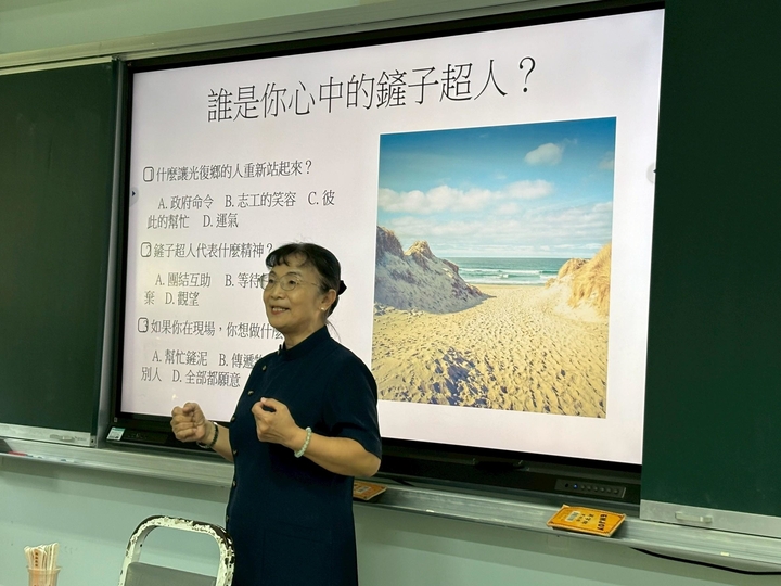用過午餐後我們來到我們最愛的國二大愛班,慧文媽媽和孩子們分享「鏟子超人」的課程,慧文媽媽也是鏟子超人,班上趙向還有幾位同學,也和同學一起投入光復災區的救災活動,他們都和慧文媽媽一樣感受到災民的苦和助人的快樂,美金媽媽和惠秀媽媽也補充救災活動中,彼此的互助合作也是很重要的,因為有投入救災,孩子們也特能感受付出助人的重要;接下來是孩子們的幸福時光,10月的慶生會和點心時間,瑞珍媽媽和四川爸爸為孩子準備的是好吃的抓餅和巧克力,祝福孩子能具備巧妙克服壓力的能力,孩子們也都喜孜孜地享受這份幸福滋味。